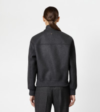 Bomber jacket in double cashmere with ribbed knit cuffs and bottom hem. Featuring double welt pockets in leather, it comes with the distinctive T-stitching on the zip pull, recalled by the hand-embroidery at the center of the shoulders. - Made in Italy - Bomber jacket in cashmere - Fitting: regular - The model is 5' 9'' and wears size 38 (IT) - Item composition: 95% cashmere, 5% wool, knit hems 95% cashmere, 4% polyamide, 1% elastane, ovine leather detailing - Maintenance and care cards included
