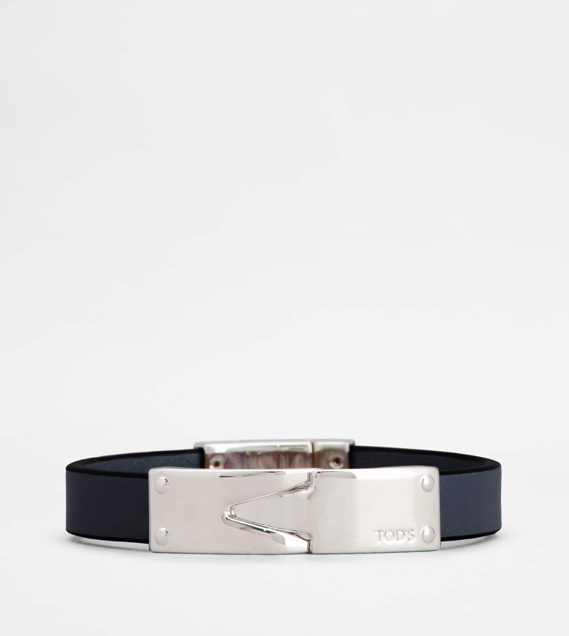 Bracelet in fine calfskin leather, with metal Greca insert and branded closure. A contemporary accessory suitable for any look. - Made in Italy - Bracelet in leather - Item crafted in calfskin leather - Metal inserts and closure - Length 8 ins, width 0.4 ins - Maintenance and care cards included