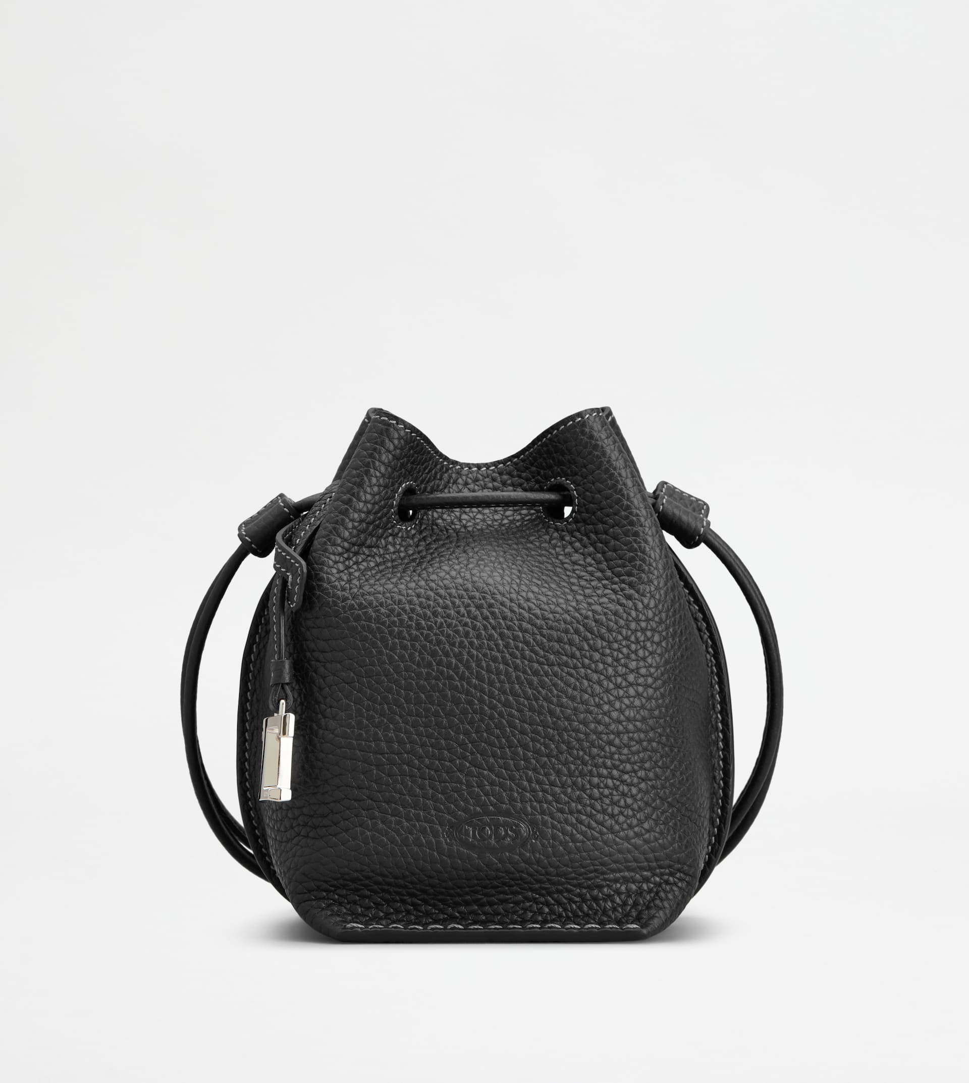 This micro bucket bag expresses Tod's craftsmanship in every detail. The bottom comes with the distinctive waxed thread stitching. The unlined construction enhances the quality and softness of the exposed-grained leather. Featuring a tubular shoulder strap that works as a drawstring, the model is complemented by the iconic T Timeless pendant. - Dimensions: L 8.3 ins x H 7.1 ins x D 4.5 ins - Drawstring-shoulder strap: height (drop) 21.7 ins - Made in Italy - Micro bag in leather - Item crafted in bovine leather - Removable T Timeless pendant in metal - Tod's logo stamped on the front - Maintenance and care cards included - Branded dustbag