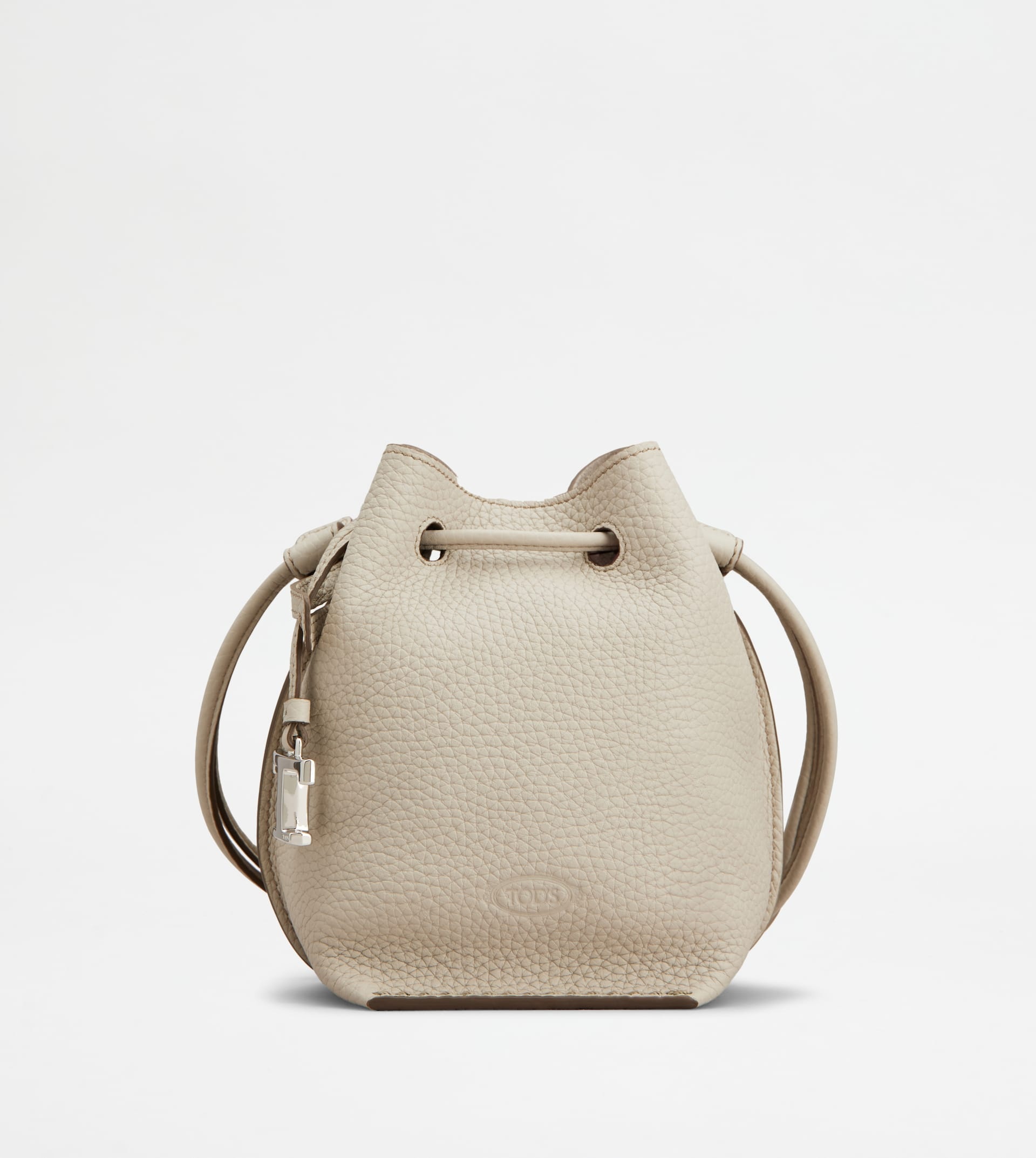 This micro bucket bag expresses Tod's craftsmanship in every detail. The bottom comes with the distinctive waxed thread stitching. The unlined construction enhances the quality and softness of the exposed-grained leather. Featuring a tubular shoulder strap that works as a drawstring, the model is complemented by the iconic T Timeless pendant. - Dimensions: L 8.3 ins x H 7.1 ins x D 4.5 ins - Drawstring-shoulder strap: height (drop) 21.7 ins - Made in Italy - Micro bag in leather - Item crafted in bovine leather - Removable T Timeless pendant in metal - Tod's logo stamped on the front - Maintenance and care cards included - Branded dustbag