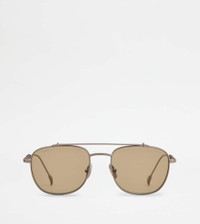Caravan-shaped sunglasses, crafted in ultralight metal. Characterized by the iconic leather weaving on the branded temples, they come with a sophisticated and elegant design. - Made in Italy - Men's Tod's Sunglasses - Galvanized metal frame - Painted metal and leather temples - Dimensions: lens width 2.1 ins, nose bridge 0.7 ins, temple length 5.7 ins - UVA/UVB protection - Compliant with EN ISO 12312-1 standard - Branded case