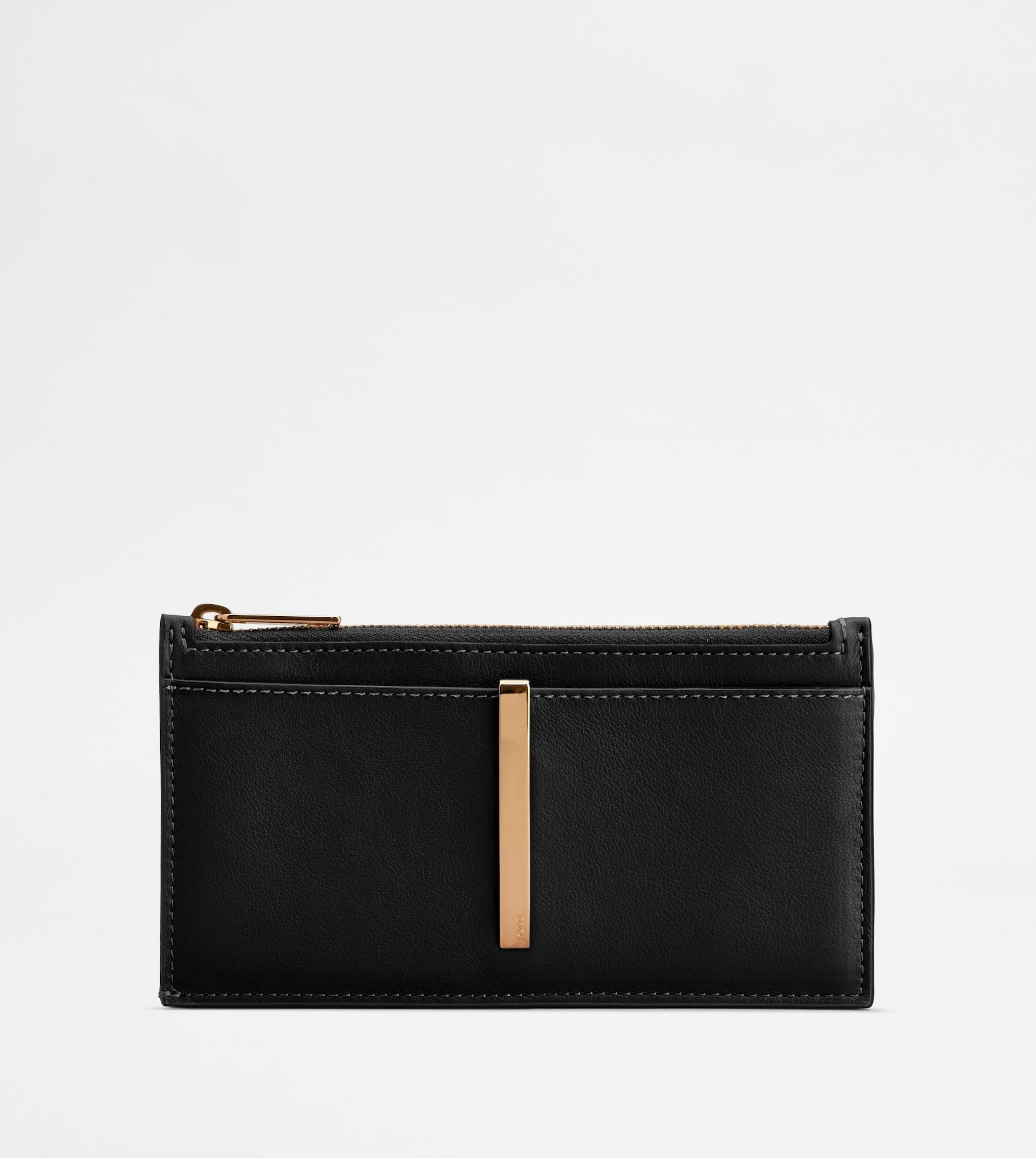 Credit card holder in soft calfskin leather with metal bar accessory fixed on the front pocket. Featuring a zipped central compartment, it comes with flat pocket and cardslots on the back. - Dimensions: L 6.3 ins x H 3.3 ins x D 0.6 ins - Made in Italy - Card Holder in leather - Item crafted in calfskin leather - Front pocket - Metal bar accessory on the front - Zip closure - 1 flat pocket on the back - 7 cardslots on the back - Maintenance and care cards included