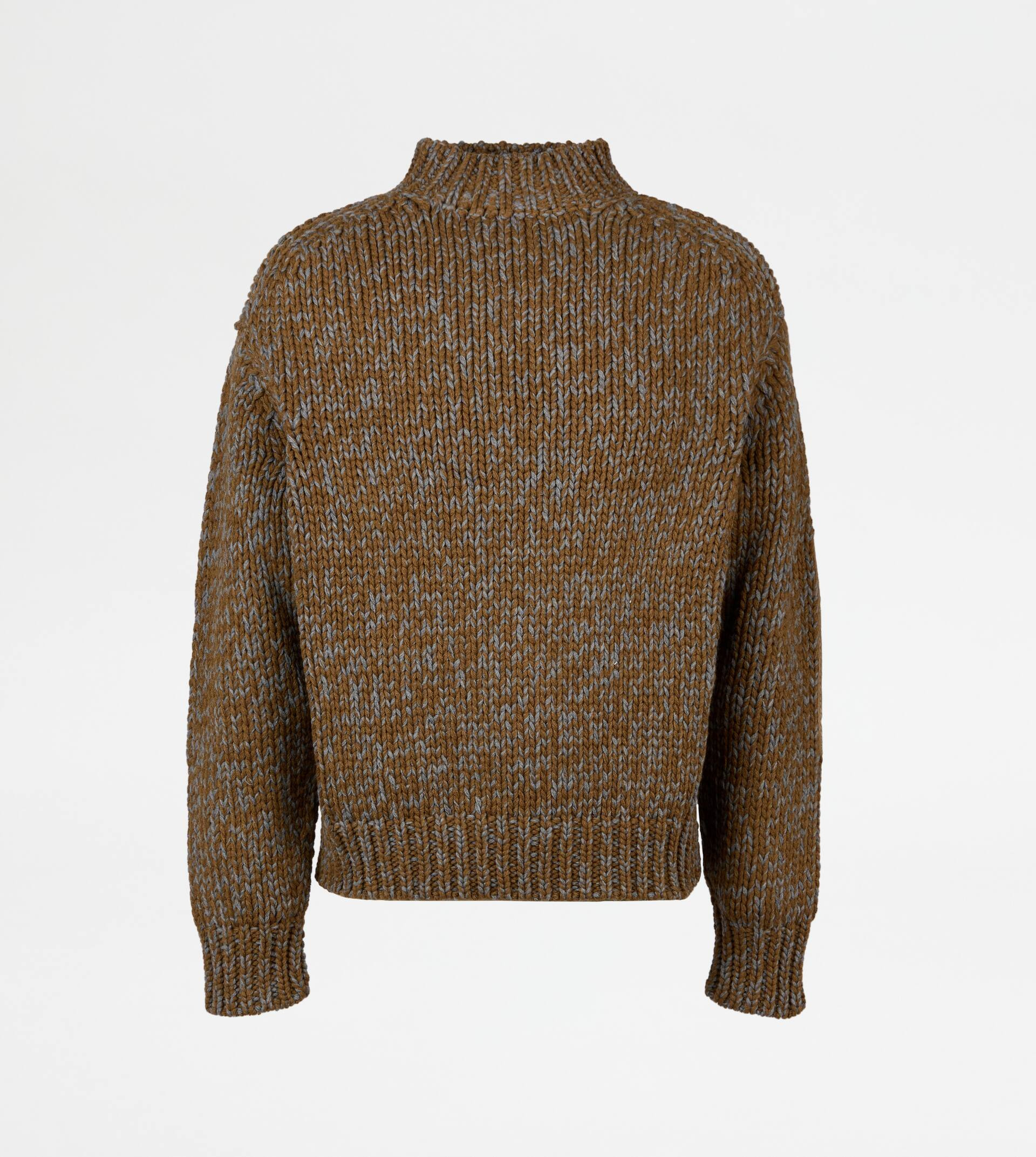 Relaxed-fit pullover in wool and cashmere mouline knit, with lowered armholes. A refined wardrobe evergreen, enriched by the leather Tod's tag applied on the back. - Made in Italy - Mouline pullover - Fitting: relaxed - Item composition: 70% wool, 30% cashmere, leather detailing - Maintenance and care cards included