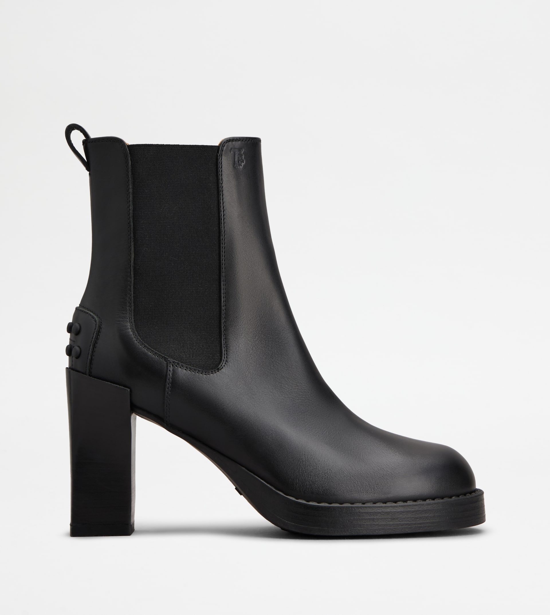 Characterized by an embossed rubber pebble outsole and a rubber heel that slightly covers the heel, these Chelsea boots come with an elegant and sophisticated line. Crafted in soft calfskin leather, they feature the Tod's monogram stamped on the upper edge. - Made in Italy - Ankle boots with heel - Calfskin leather upper - Side elastic inserts - Stamped Tod's monogram - Leather insole - Rubber heel 3.1 ins - Rubber outsole - Maintenance and care cards included - Branded dustbag