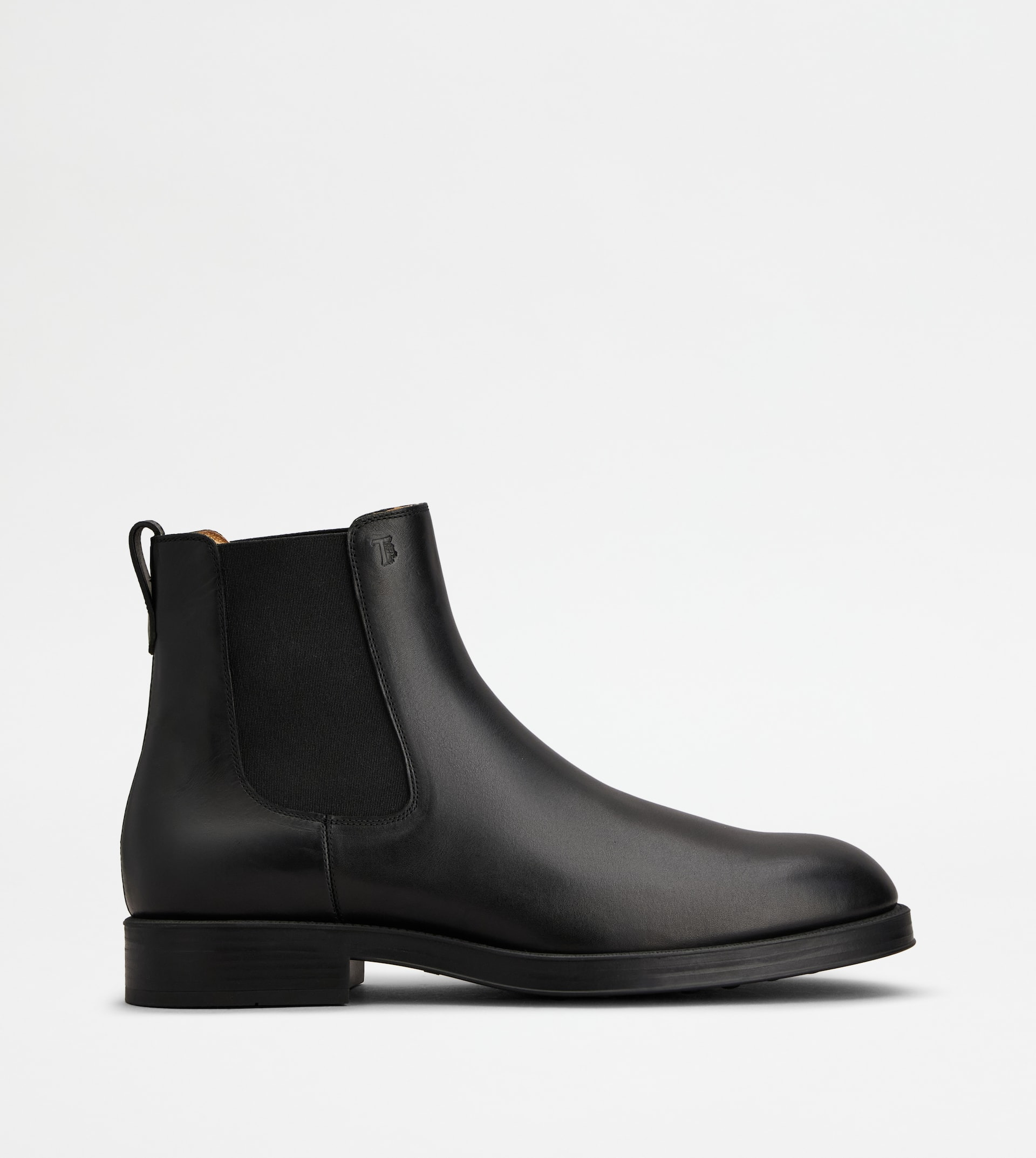 Chelsea ankle boots in calfskin leather, with stamped Tod's monogram. An urban style with an essential and refined line, featuring a rubber outsole with embossed rubber pebbles. - Made in Italy - Men's Chelsea boots - Calfskin leather upper - Side elastic inserts - Stamped Tod's monogram - Leather lining and insole - Rubber outsole with embossed rubber pebbles - Maintenance and care cards included - Branded dustbag