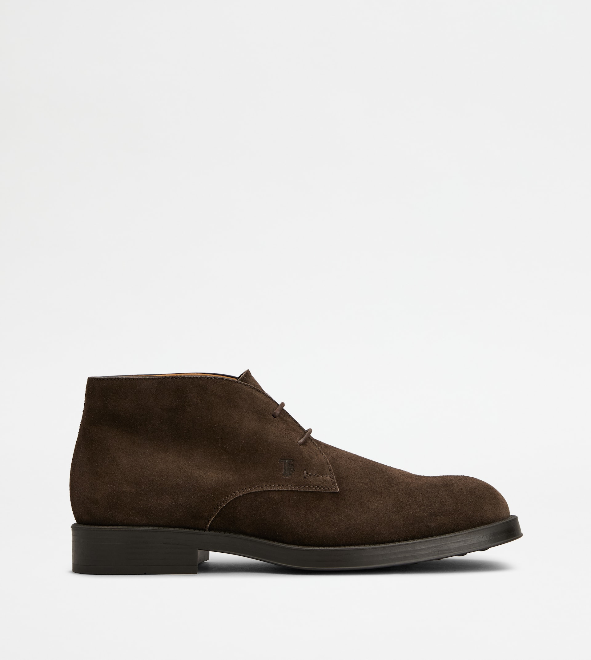 Desert boots in calfskin suede, with stamped Tod's monogram. An urban style with essential and refined line, featuring a rubber outsole with embossed rubber pebbles. - Made in Italy - Men's desert boots - Calfskin suede upper - Stamped Tod's monogram - Leather lining and insole - Rubber outsole with embossed rubber pebbles - Maintenance and care cards included - Branded dustbag