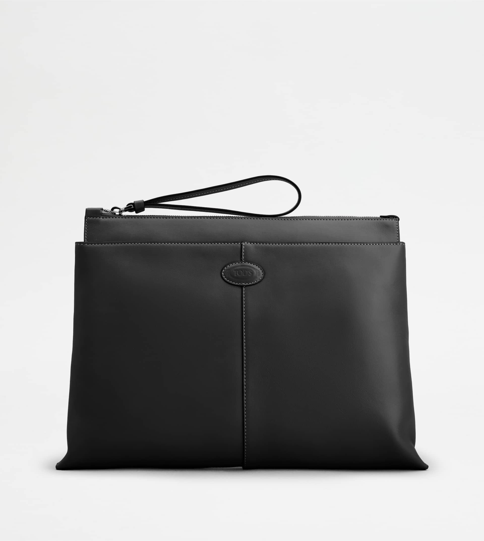 The central ribbing and the stamped Tod's logo, typical of the Di Bag line, characterize this refined document holder. Crafted in soft calfskin leather, it is closed with a maxi zip pull that works as a wristlet. - Dimensions: L 15.2 ins x H 10.2 ins x D 2 ins - Made in Italy - Document holder pouch - Item crafted in calfskin leather - Tod's logo stamped on the front - Zip closure - Maintenance and care cards included - Branded dustbag