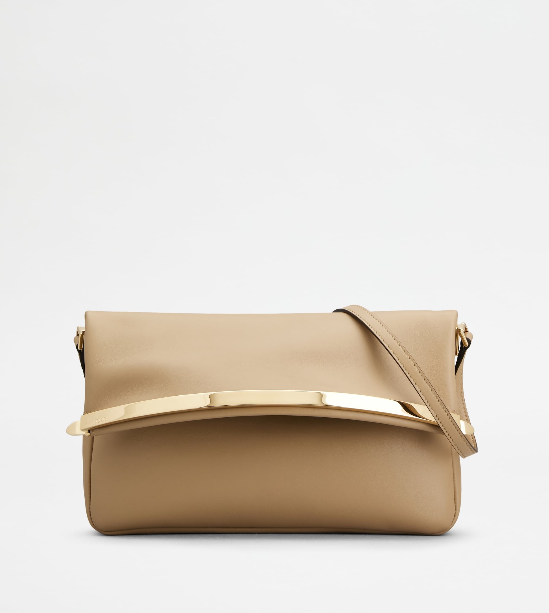 FLAP BAG IN LEATHER SMALL - BEIGE