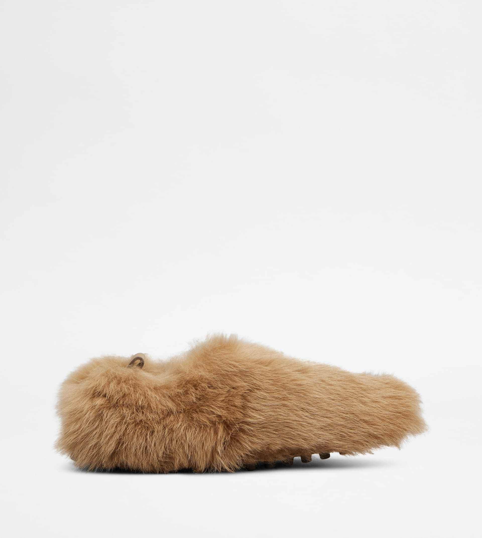 Tod's Gommino loafers interpret an informal and casual elegance. Result of careful craftsmanship, they come here in a slipper version, in soft fur, with a gathered topline and iconic Tod's outsole. - Made in Italy - Women's Tod's Gommino Loafers - Ovine fur upper - Calfskin leather inserts - Gathered topline - T-stitching on the back - Leather lining and insole - Iconic Tod's outsole - Maintenance and care cards included - Branded dustbag