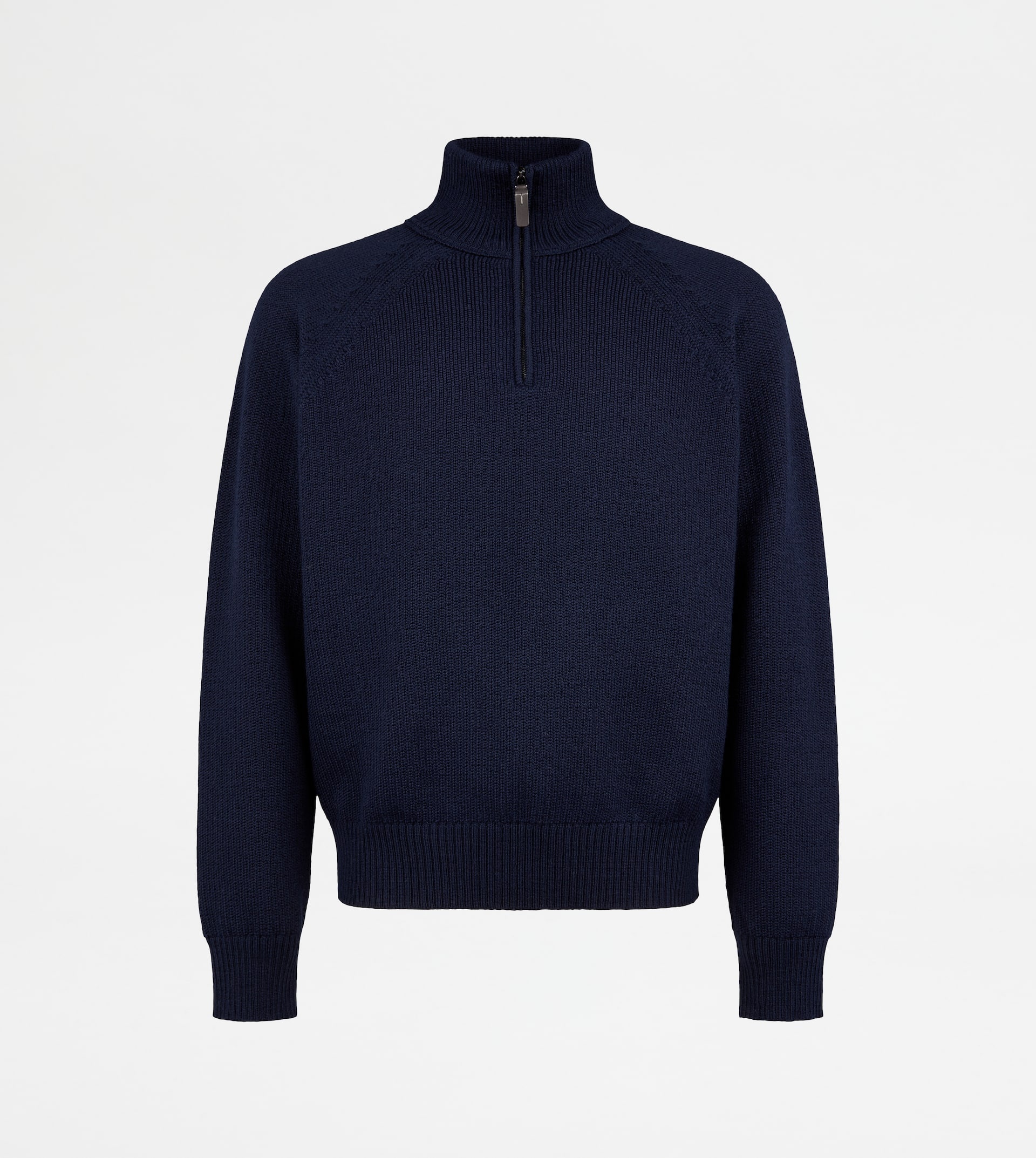 HALF ZIP PULLOVER IN MERINO WOOL - BLUE