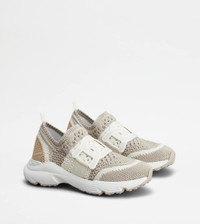 KATE SLIP-ON SNEAKERS IN FABRIC - BEIGE, OFF WHITE