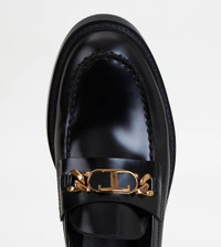 Loafers in refined leather with penny bar, metal T Chain accessory and rubber outsole with embossed rubber pebbles. - Made in Italy - Women's Tod's loafers - Leather upper - Penny bar - Metal T Chain accessory - Rubber heel - Rubber outsole with embossed rubber pebbles - Maintenance and care cards included - Branded dustbag