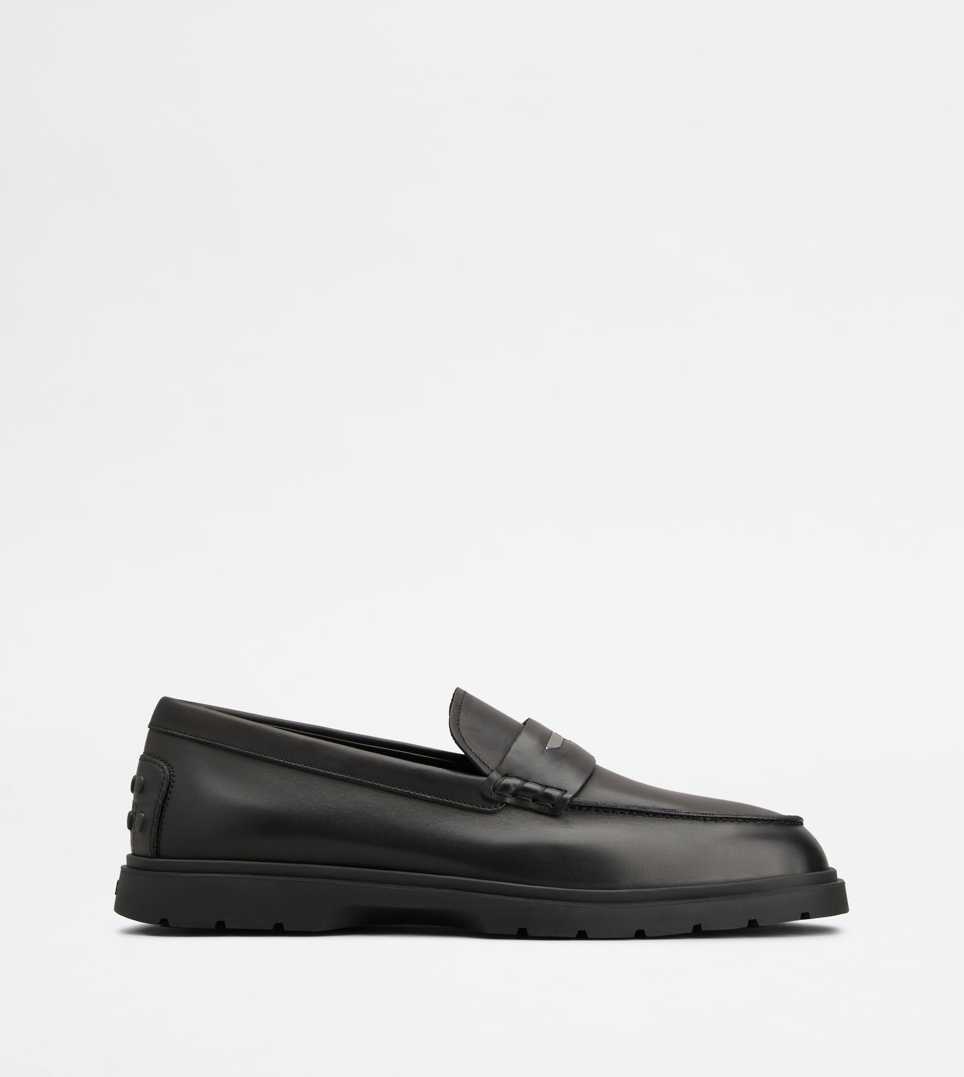 Loafers in refined calfskin leather, characterized by a penny bar with branded metal insert. Featuring a rubber outsole with embossed rubber pebbles, they are an informal and versatile evergreen style, with the distinctive rubber pebbles on the heel. - Made in Italy - Men's loafers with penny bar - Calfskin leather upper - Penny bar with metal insert - Leather insole - Rubber pebble detailing on the heel - Rubber outsole with embossed rubber pebbles - Maintenance and care cards included - Branded dustbag