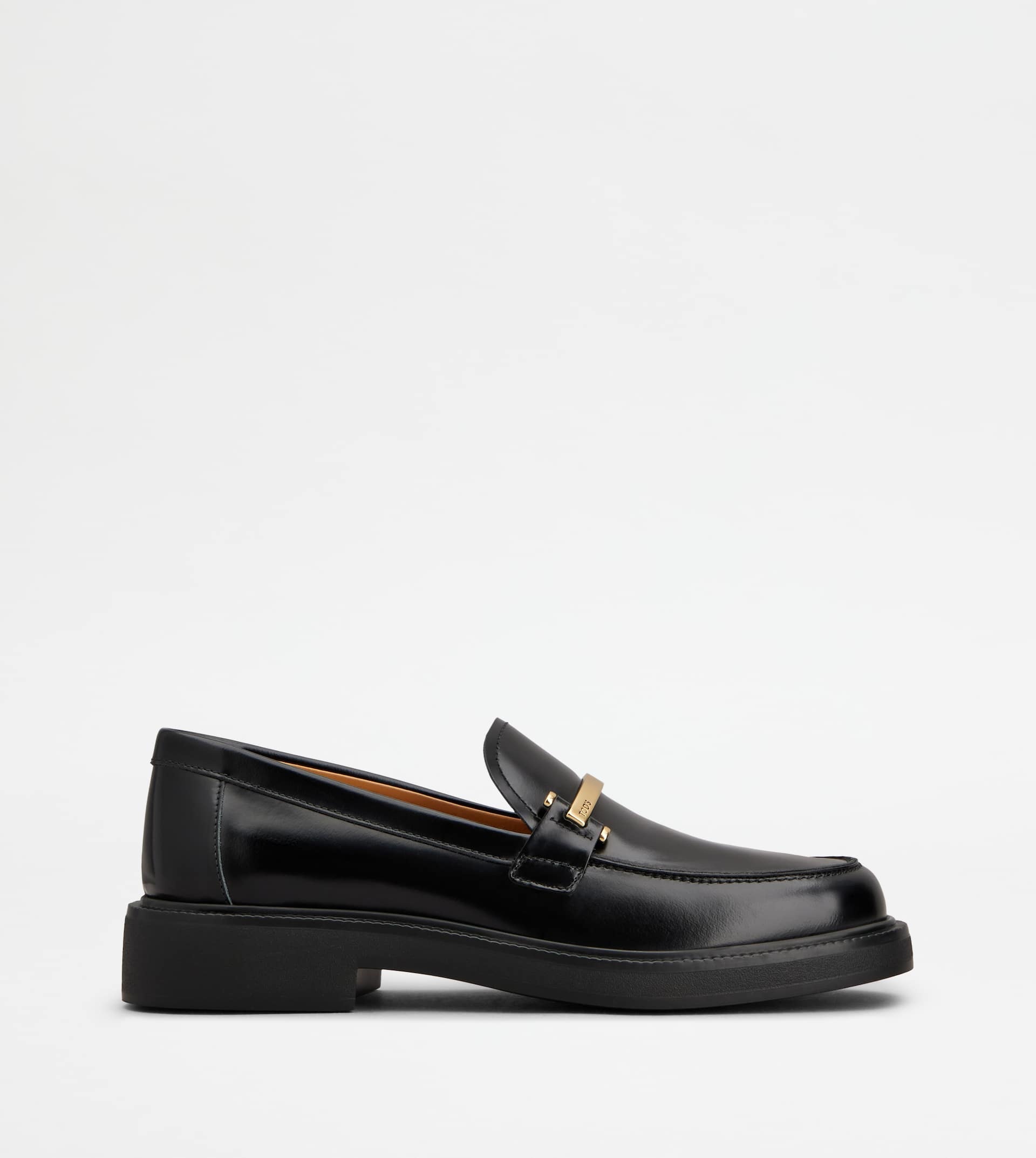 Loafers in elegant brushed calfskin leather, enriched by the metal bar accessory with Tod's logo secured on the side. Finished with exposed stitching, they feature a leather outsole with embossed rubber pebbles. - Made in Italy - Women's loafers with clamp - Calfskin leather upper - Branded metal bar accessory - Leather lining and insole - Rubber outsole with rubber pebbles - Maintenance and care cards included - Branded dustbag