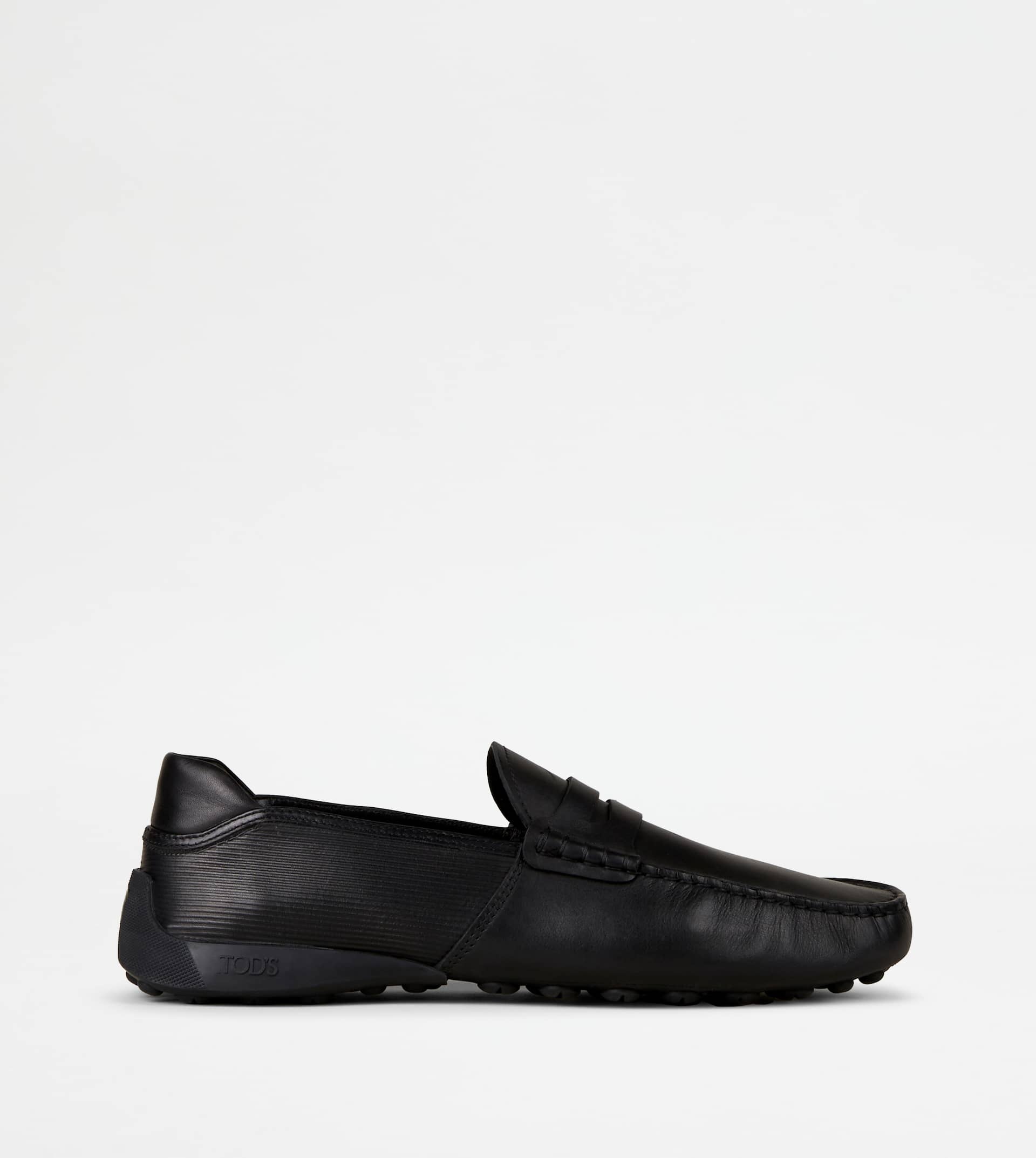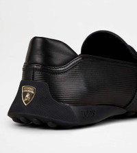 Featuring the iconic Tod's rubber pebbles reinterpreted by drawing on Automobili Lamborghini design, these bold mood loafers come with a back shell emphasized by the car manufacturer logo. The smooth leather upper, with tubular construction and penny bar, is finished by exposed handmade stitching. An original synthesis of traditional craftsmanship and innovation, the result of a collaboration under the sign of the most exclusive Italian lifestyle. - Made in Italy - Unisex Tod's Loafers - Tod's for Automobili Lamborghini - Leather upper - Tubular manufacturing - Penny bar - Exposed handmade stitching - Rubber heel with Automobili Lamborghini logo - Y-shaped rubber pebble outsole