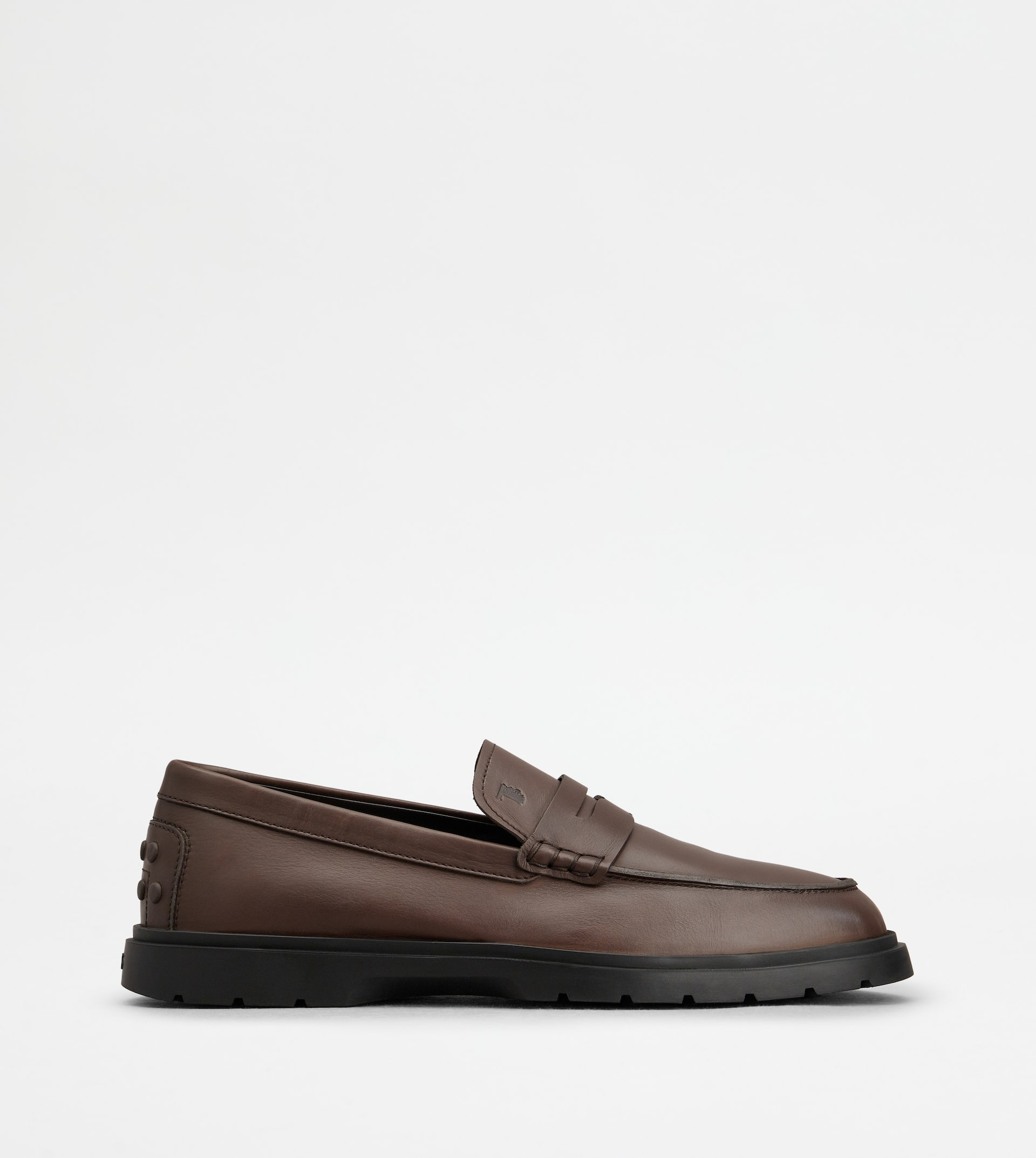 Loafers in soft leather with penny bar and Tod's monogram stamped on the front. Featuring a grooved rubber outsole and embossed rubber pebbles, they are an informal and casual style, enhanced by the iconic rubber pebbles on the heel. - Made in Italy - Loafers with rubber outsole - Leather upper - Penny bar - Stamped Tod's monogram - Exposed handmade stitching - Leather insole - Rubber pebble detailing on the heel - Grooved rubber outsole with embossed rubber pebbles - Maintenance and care cards included - Branded dustbag