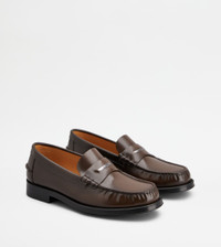 Loafers in brushed calfskin leather with slightly gathered toe and penny bar featuring branded metal insert. Enriched by the Tod's logo stamped on the side and handmade stitching, they come with a leather outsole with rubber injection. - Made in Italy - Men's Tod's Loafers - Calfskin leather upper - Penny bar with branded metal insert - Exposed handmade stitching - Leather heel with rubber insert - Leather outsole with rubber injection - Maintenance and care cards included - Branded dustbag