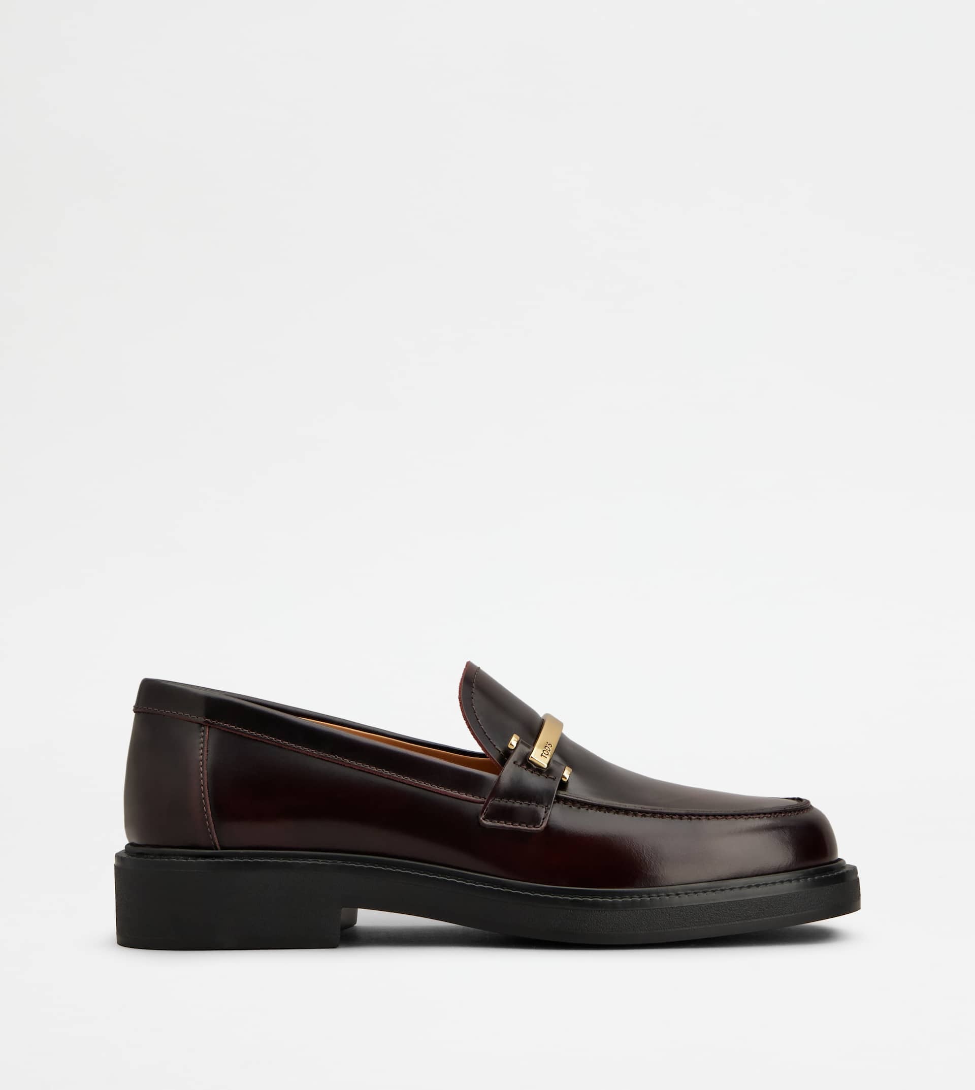 Loafers in elegant brushed calfskin leather, enriched by the metal bar accessory with Tod's logo secured on the side. Finished with exposed stitching, they feature a leather outsole with embossed rubber pebbles. - Made in Italy - Women's loafers with clamp - Calfskin leather upper - Branded metal bar accessory - Leather lining and insole - Rubber outsole with rubber pebbles - Maintenance and care cards included - Branded dustbag