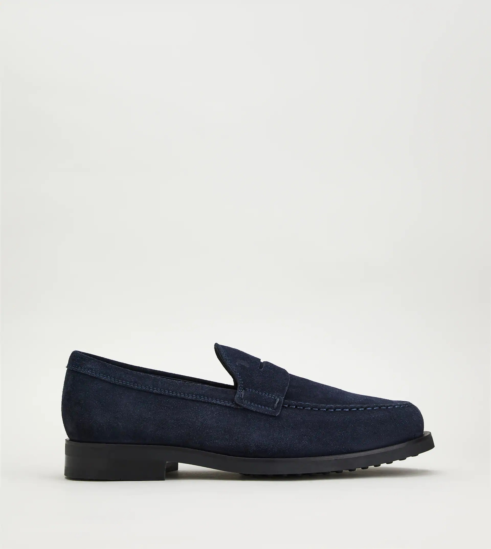 Loafers in suede with penny bar, Tod's stamped monogram and a rubber outsole with embossed pebbles. - Made in Italy - Men's Tod's Loafers - Tod's stamped monogram - Exposed hand-stitching - Penny bar - Rubber outsole with embossed pebbles - Care and maintenance instructions included - Branded dustbag included