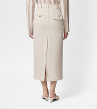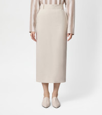 Midi skirt in linen canvas with fluid hand. Featuring slanted front pockets, it comes with a wide slit and two welt pockets on the back: one with button, one with flap and hand-embroidered Tod's monogram. - Made in Italy - Skirt in linen - Fitting: regular - The female model is 5' 9'' and wears size 38 (IT) - Item composition: 100% linen - Maintenance and care cards included