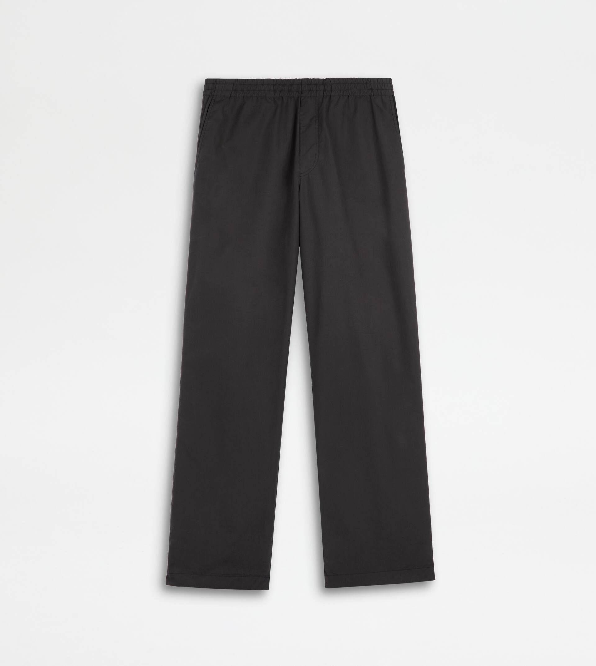 Pants with drawstring and elastic waistband, crafted in lightweight cotton with anti-drip finishing. Featuring slanted front pockets, they come with flap back pockets with button, one with the leather Tod's tag. - Made in Italy - Pants with drawstring - Fitting: regular - The male model is 6' 2'' and wears size M (IT) - Item composition: 100% cotton with polyurethane coating, ovine leather detailing - Maintenance and care cards included