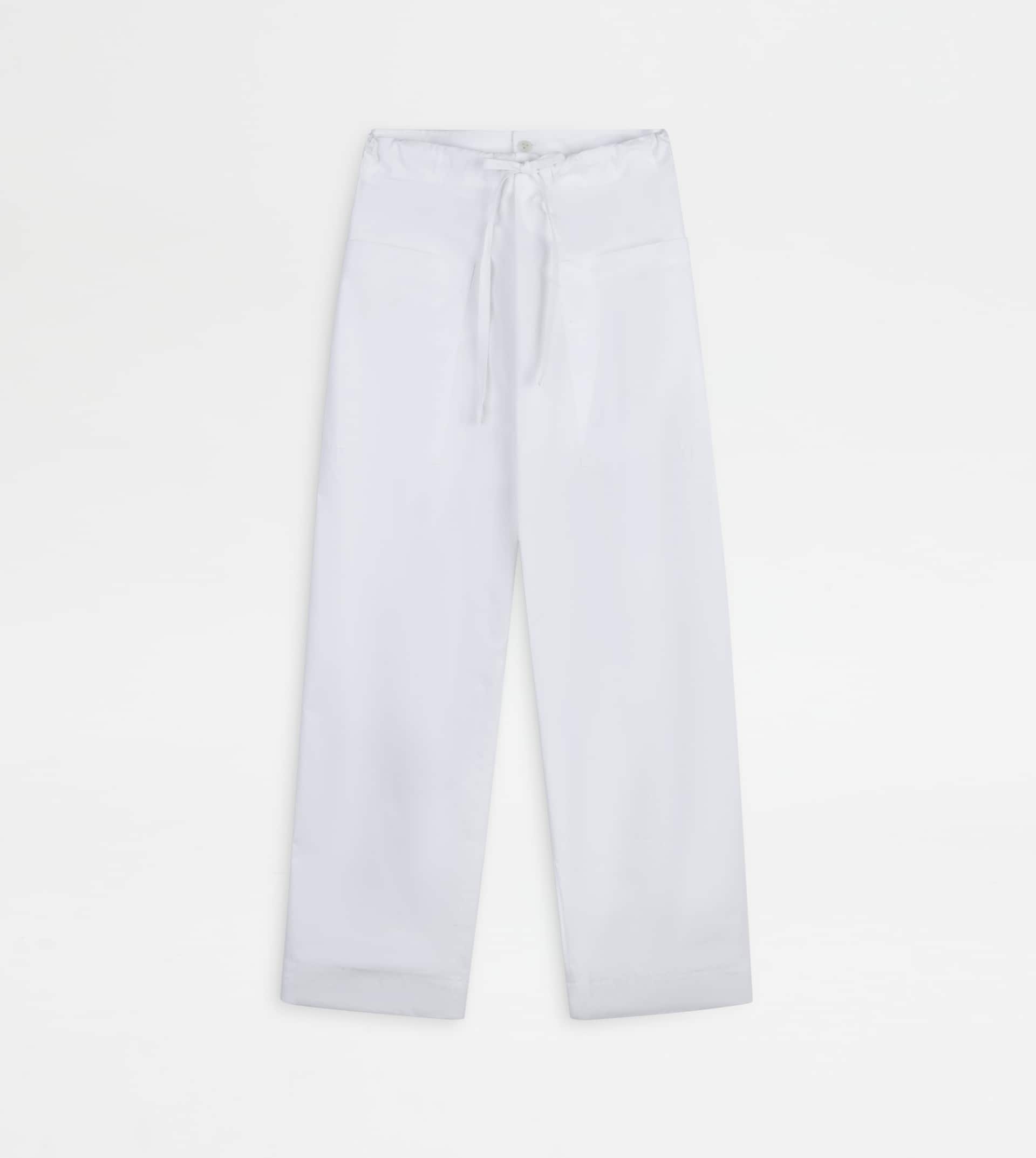 PANTS IN POPLIN WITH DRAWSTRING - WHITE