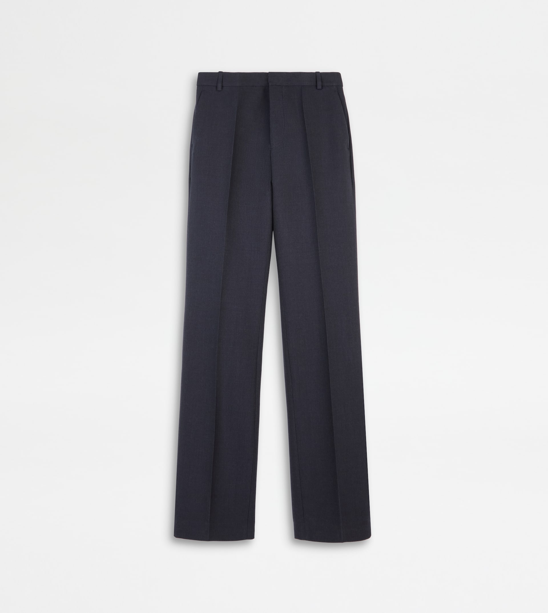 Pants in melange wool gabardine, with ironed crease and straight leg. Featuring slanted front pockets, they come with a double welt back pocket with button and a flap pocket with hand-embroidered T-stitching. Fastened with zip, hook and counter-button, they interpret a relaxed elegance. - Made in Italy - Pants with crease - Fitting: regular - Item composition: 100% virgin wool - Maintenance and care cards included