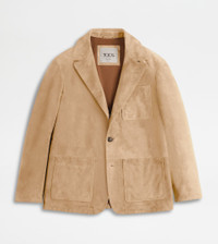 Blazer in suede with anti-drip and anti-stain treatment. A unique material with an exceptional softness, lightweight thanks to its thin thickness yet compact and resistant. Fastened with buttons with the distinctive T-stitching, the jacket features lapels with moderate proportions, inspired by Sixties outerwear. The T embroidery detail on the pocket complements the garment. - Made in Italy - Suede blazer - Item composition: 100% goatskin leather, body lining 100% cotton, sleeve lining 100% cupro - Fitting: regular - Maintenance and care cards included