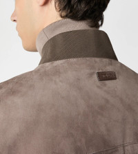 Bomber jacket in suede with anti-drip and anti-stain treatment. A unique material with an exceptional softness, lightweight thanks to its thin thickness yet compact and resistant. Featuring embossed ribbed knit inserts of the cuffs and bottom hem, the garment comes with two slanted pockets and a double-slider zip. A model enriched by refined iconic detailing: the rectangular leather patch on the back with stamped Tod's logo and shaped zip pulls, inspired by the historic Greca Belt buckle. - Made in Italy - Suede bomber jacket - Item composition: 100% goatskin leather, knit hems 85% cotton, 12% polyamide, 3% elastane, bovine leather detailing, body lining 57% cupro, 43% silk, sleeve lining 100% cupro - Maintenance and care cards included