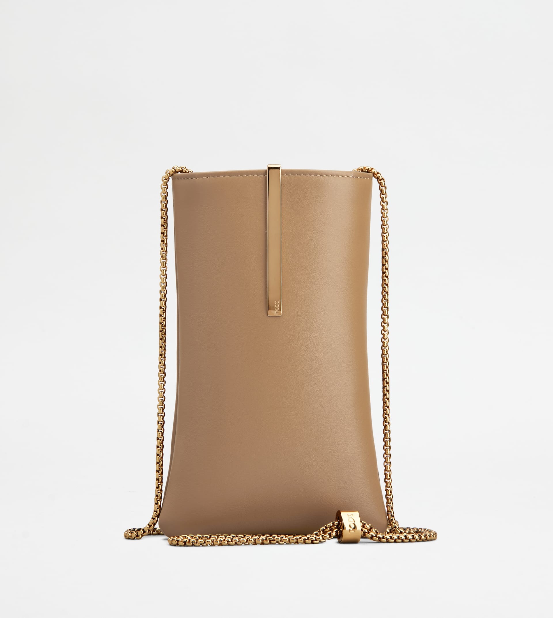 PHONE HOLDER IN LEATHER MEDIUM - BEIGE