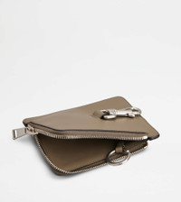 Small pouch crafted in soft calfskin leather with stamped Tod's logo. Featuring cardslots and a zipped pocket, it is enriched by a metal snap hook. A functional and elegant accessory, ideal for clipping onto your belt. - Dimensions: L 4.1 ins x H 5.3 ins x D 0.6 ins - Made in Italy - Pouch in leather - Item crafted in calfskin leather - Two cardslots - Zipped pocket - Stamped Tod's logo - Metal snap hook on the back - Maintenance and care cards included