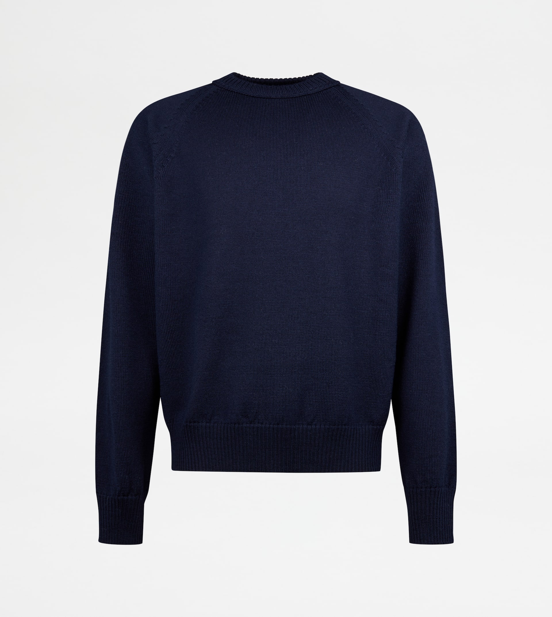 ROUND-NECK PULLOVER IN MERINO WOOL - BLUE