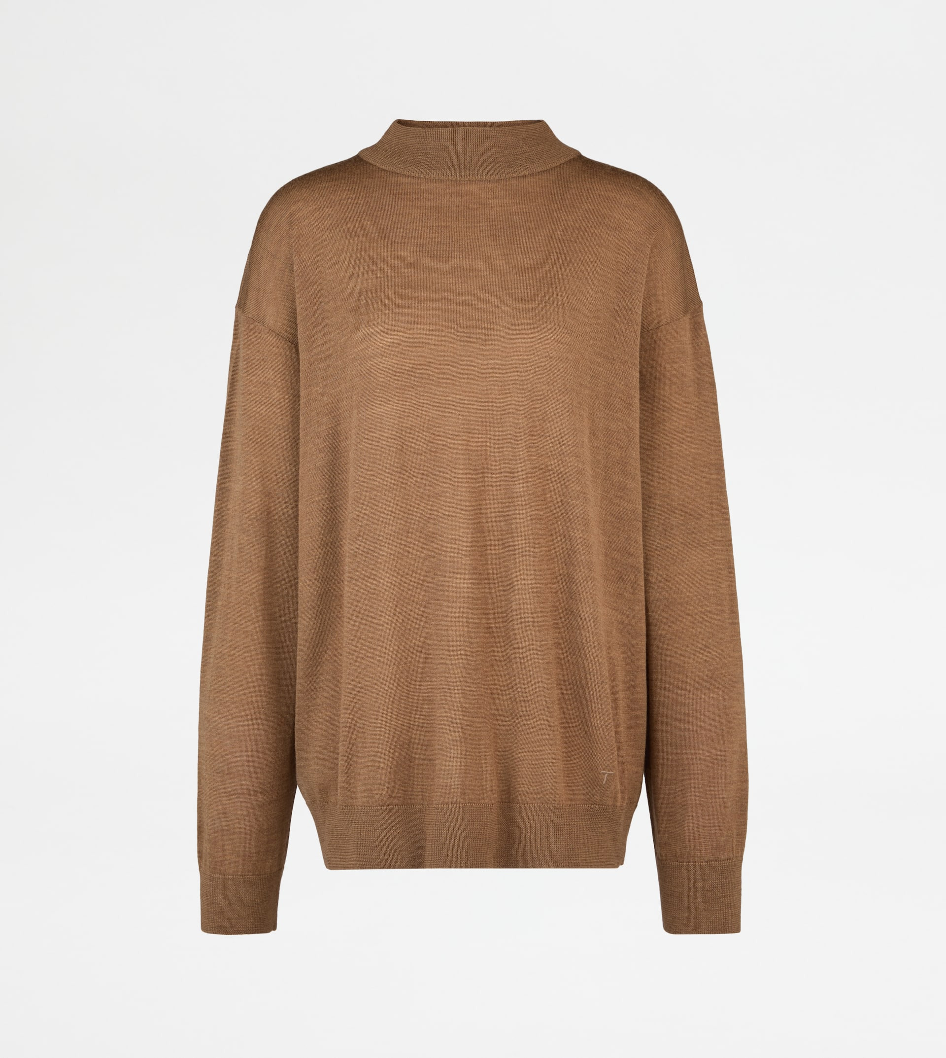 ROUND-NECK PULLOVER IN WOOL - BROWN