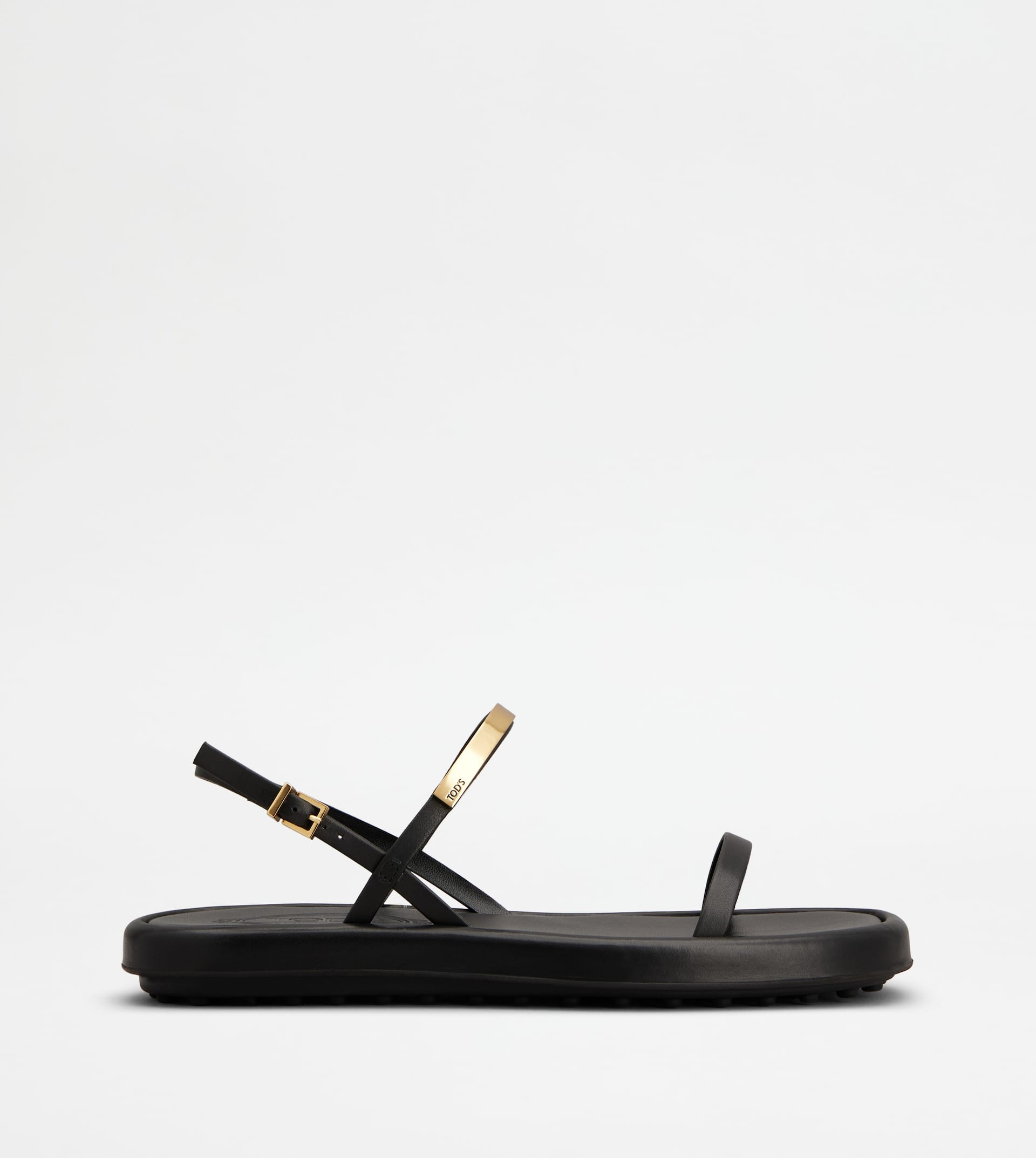 Sandals in refined calfskin leather with two thin bands and branded metal bar accessory. Featuring a rubber outsole with embossed rubber pebbles, they are a versatile creation for the summer everyday look. - Made in Italy - Women's Tod's Sandals - Calfskin leather upper - Branded metal bar accessory - Leather lining and insole - Rubber outsole with embossed rubber pebbles - Maintenance and care cards included - Branded dustbag