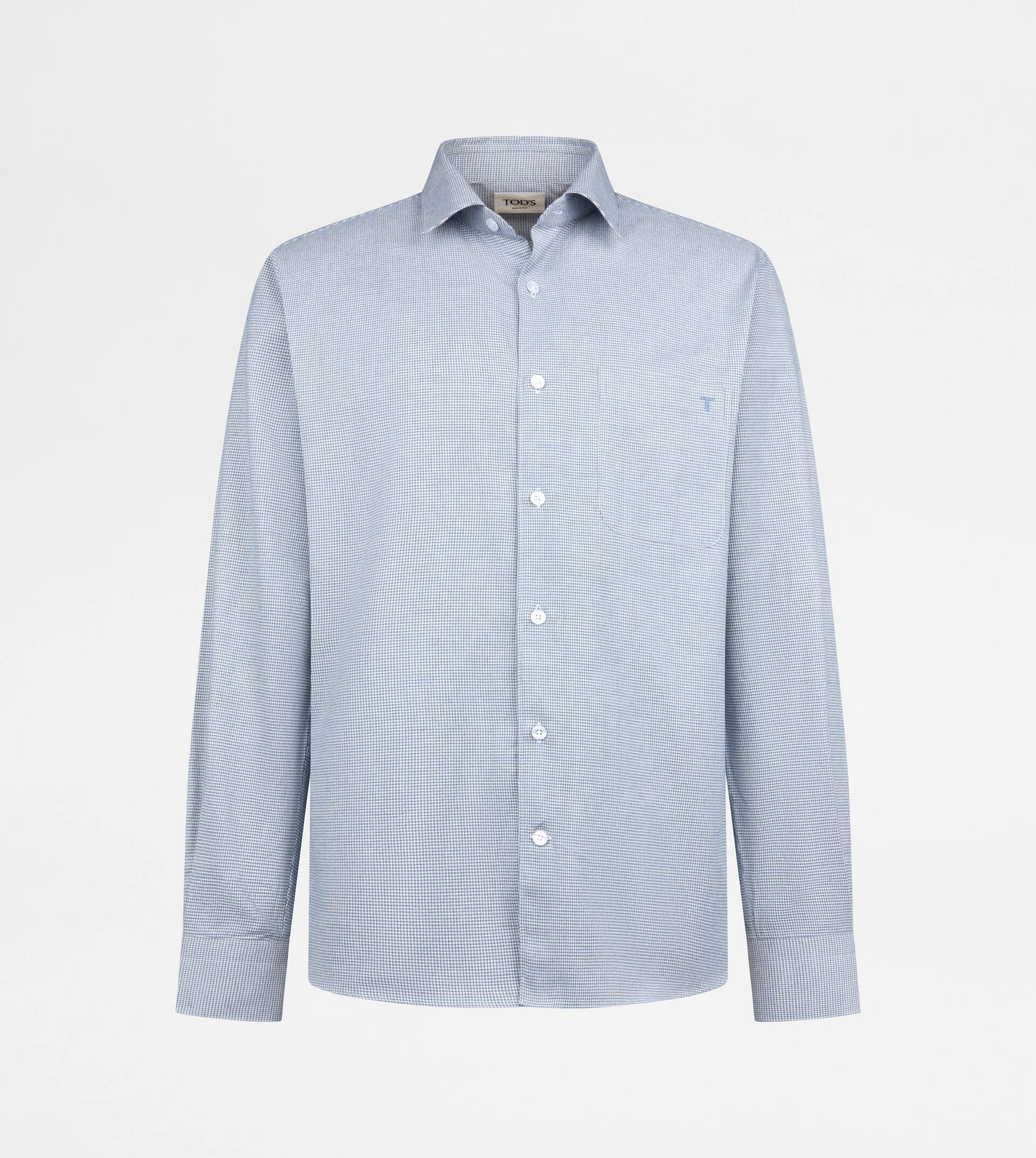Shirt inn cotton twill with herringbone pattern, Italian collar and branded buttons. Featuring the Tod's monogram inlaid on the breast pocket, it is perfect from the office to the weekend thanks to its informal and refined allure. - Made in Italy - Shirt in cotton - Fitting: regular - Item composition: 100% cotton - Maintenance and care cards included