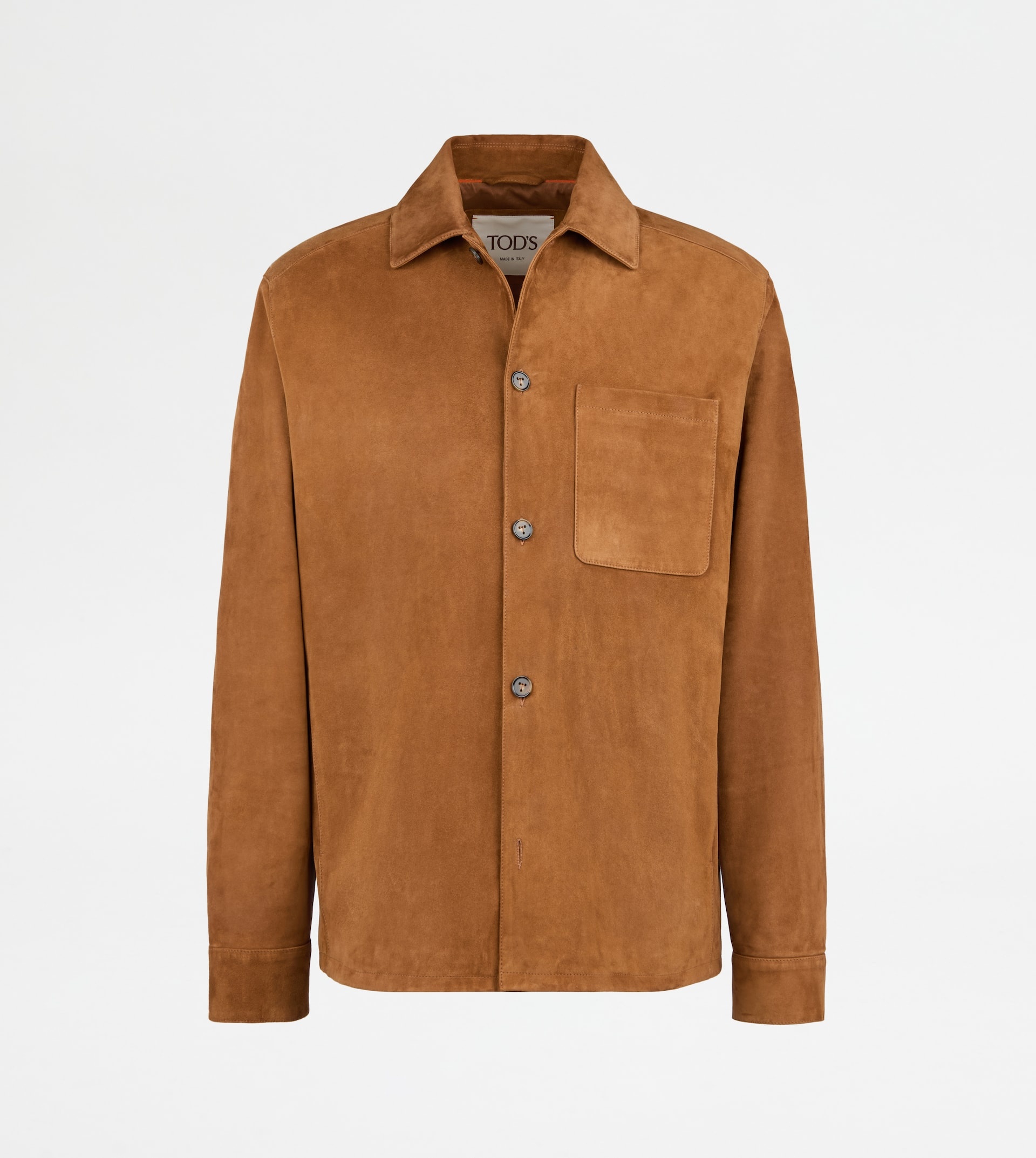 SHIRT JACKET IN PASHMY SUEDE - BROWN