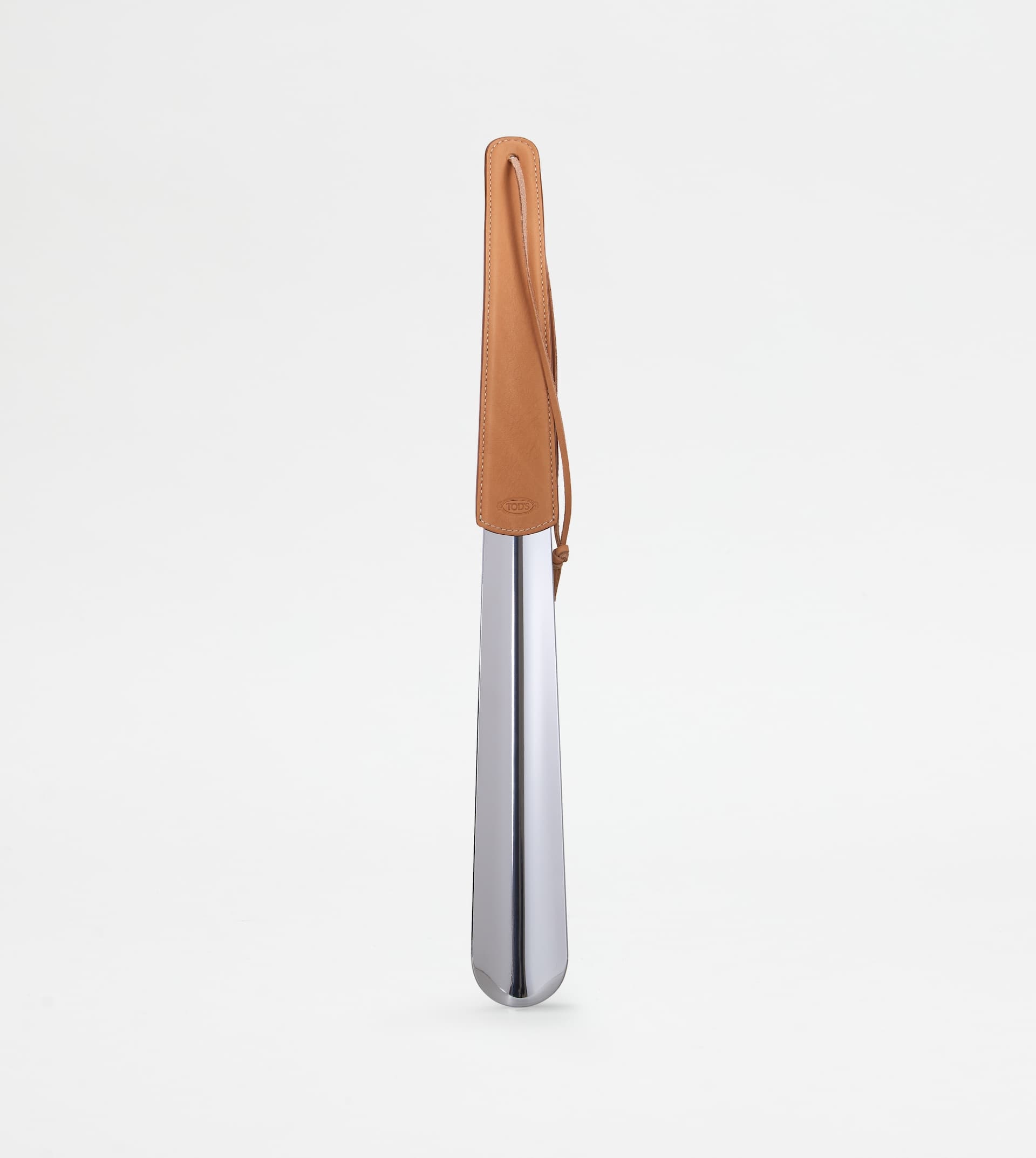 Shoehorn in metal with leather handle and stamped Tod's logo. - Made in Italy - Men's Tod's Shoe horn - Metal shoe horn - Leather handle - Stamped Tod's logo - Maintenance and care cards included - Branded dustbag