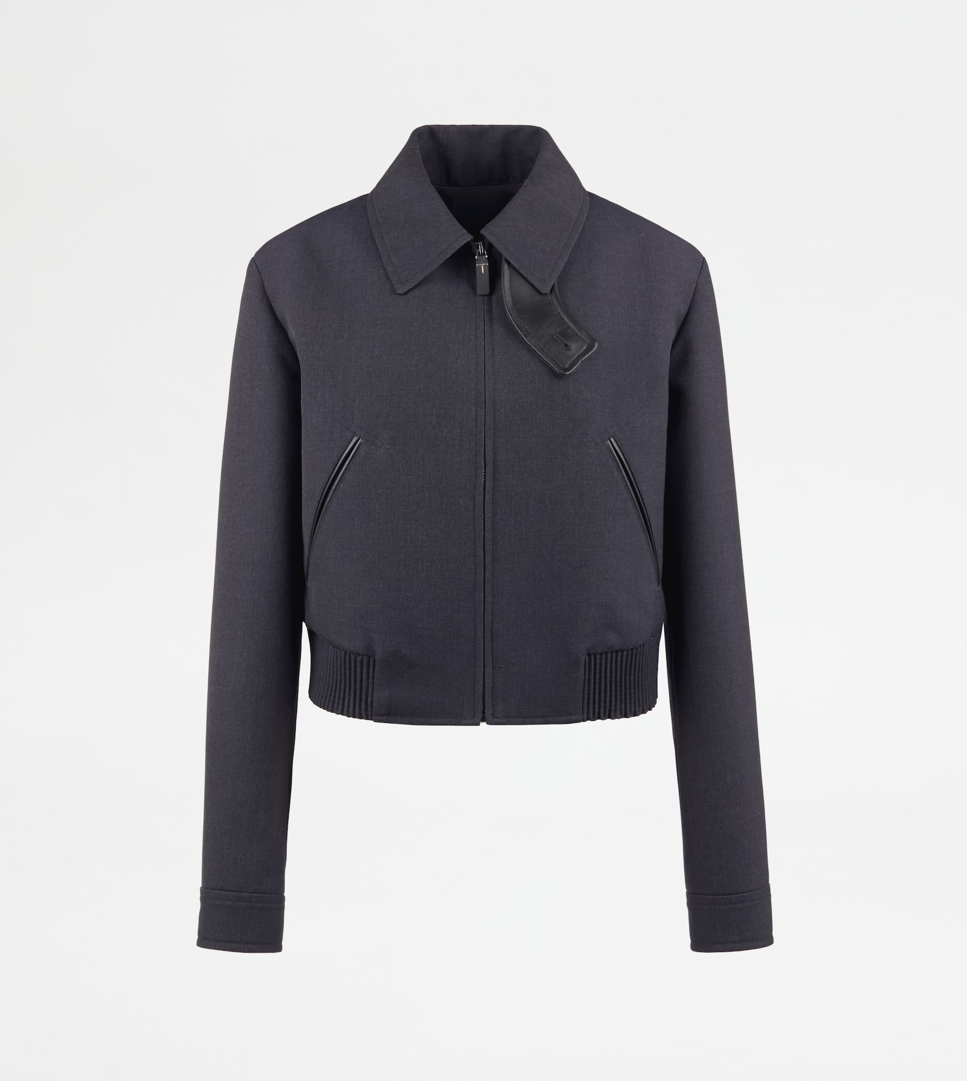 SHORT BOMBER JACKET IN WOOL GABARDINE - BLUE