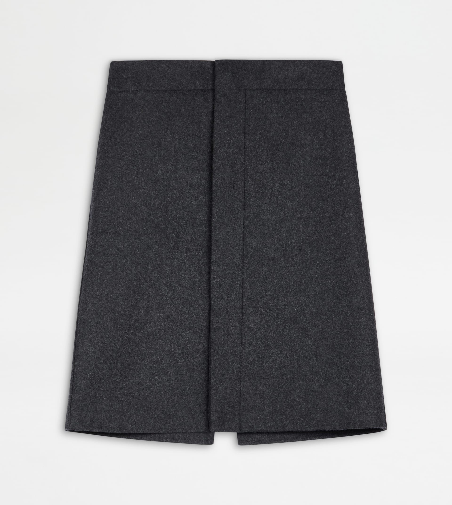 Skirt in double cashmere, with back slit. Featuring a concealed fastening with buttons secured by he distinctive T-stitching, it comes with welt side pockets. - Made in Italy - Skirt in cashmere - Fitting: regular - The model is 5' 9'' and wears size 38 (IT) - Item composition: 95% cashmere, 5% virgin wool, second fabric 77% cotton, 23% polyamide - Maintenance and care cards included