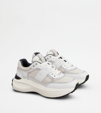 SNEAKERS IN LEATHER AND FABRIC - WHITE, SILVER