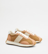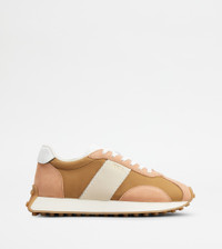 SNEAKERS IN LEATHER AND TECHNICAL FABRIC - PINK, BROWN, BEIGE, WHITE