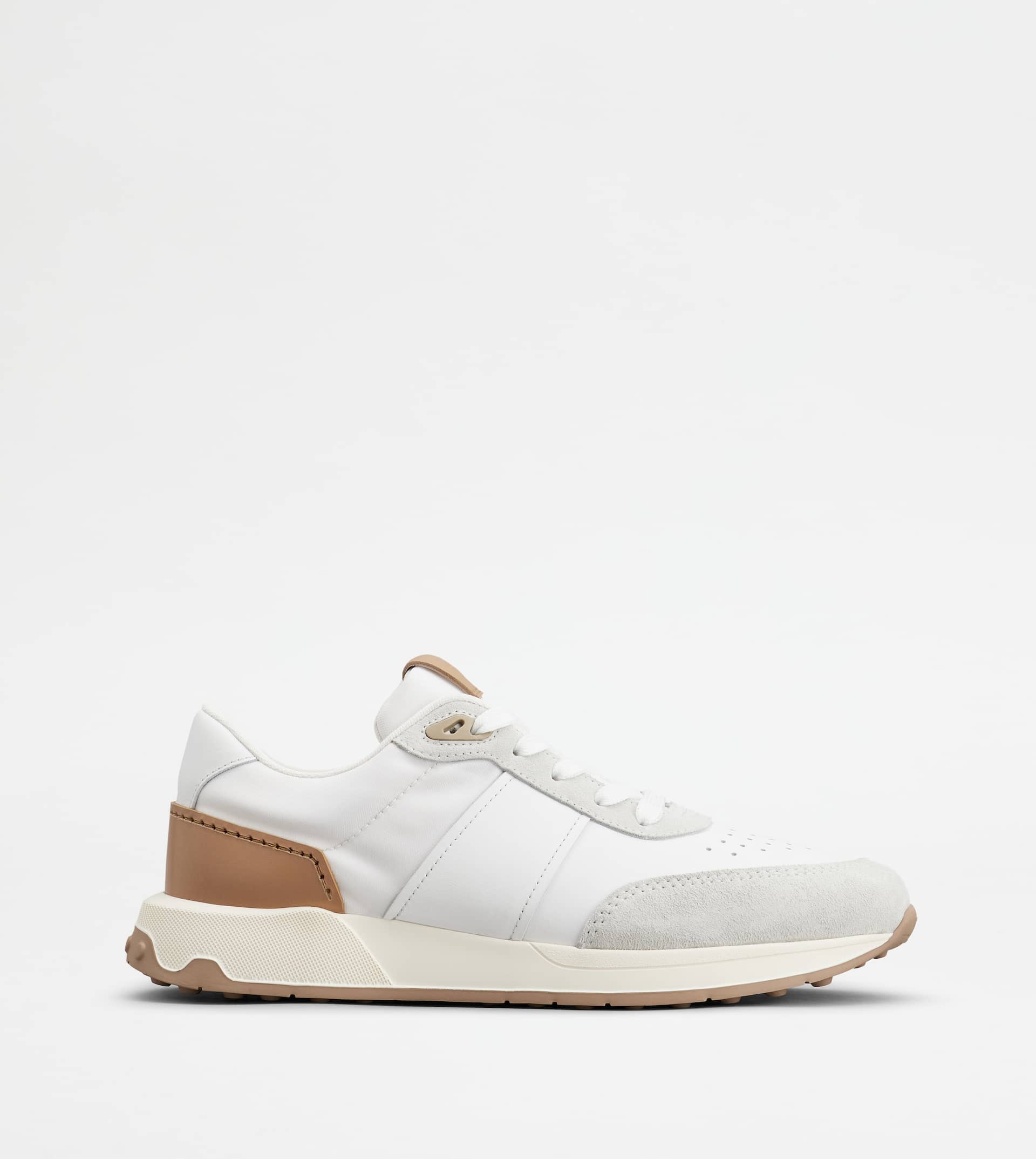 SNEAKERS IN LEATHER AND TECHNICAL FABRIC - WHITE