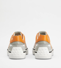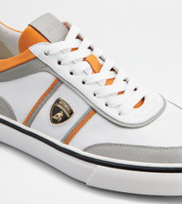 SNEAKERS IN LEATHER - GREY, WHITE, ORANGE