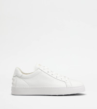 A sober and essential line characterizes these sneakers in soft calfskin leather. Featuring a rubber outsole, they come with the Tod's logo on the tongue and the distinctive rubber pebbles on the heel. - Made in Italy - Women's sneakers - Calfskin leather upper - Tod's logo stamped on the tongue - Leather lining ad insole - Rubber outsole with rubber pebbles - Rubber pebble detailing on the heel - Maintenance and care cards included - Branded dustbag