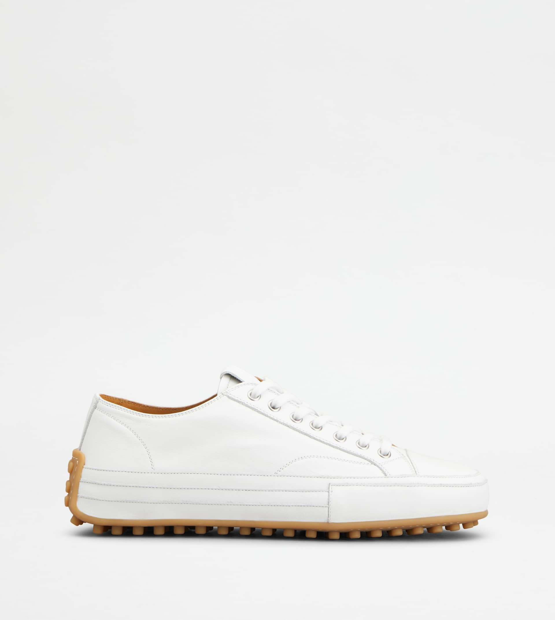 Characterized by a rubber outsole with the distinctive embossed rubber pebbles as on the heel, these sneakers feature an upper inspired by vintage basketball shoes. Crafted in refined leather, with Tod's logo stamped on the tongue, they interpret a sporty and sophisticated taste. - Made in Italy - Men's Tod's Sneakers - Calfskin leather upper - Tod's logo stamped on the tongue - Leather lining and insole - Rubber outsole with embossed rubber pebbles - Maintenance and care cards included - Branded dustbag