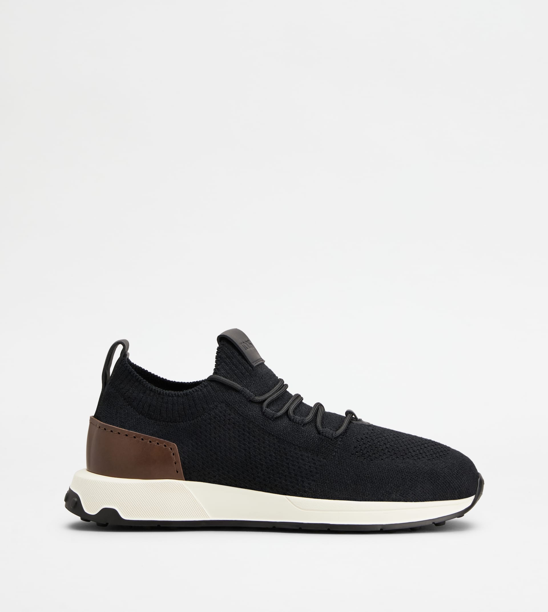 SOCK SNEAKERS IN TECHNICAL FABRIC AND LEATHER - BLACK, BROWN