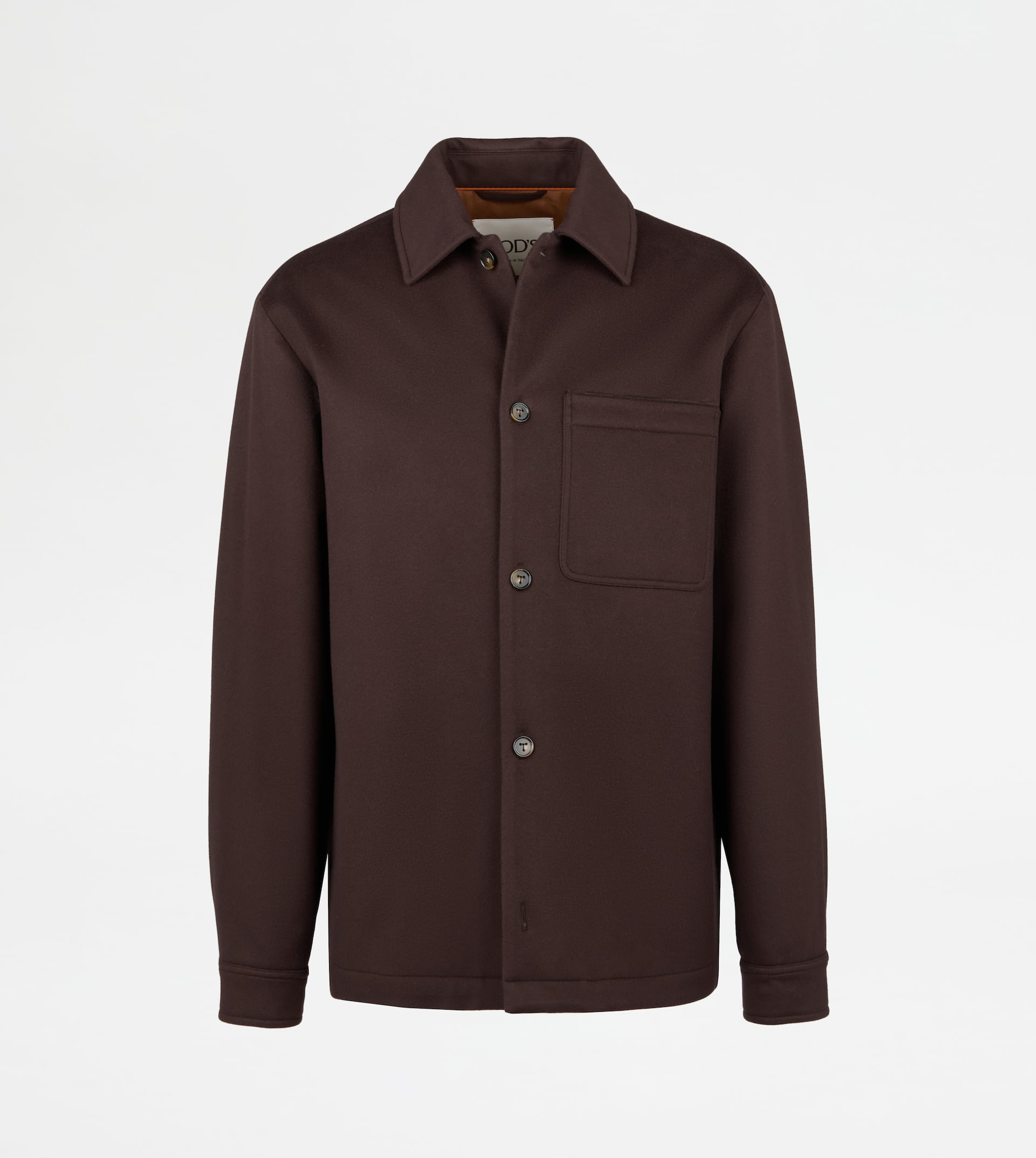 Shirt jacket in wool drap with polyurethane membrane. Fastened with buttons with the distinctive T-stitching, it features an applied breast pocket and welt side pockets. A versatile urban style, complemented by the Tod's monogram hand-embroidered on the shoulders and a suede undercollar. - Made in Italy - Shirt-jacket in wool - Fitting: relaxed - Item composition: 100% wool with polyurethane membrane, body lining 100% cotton, ovine leather detailing - Maintenance and care cards included