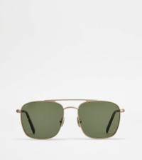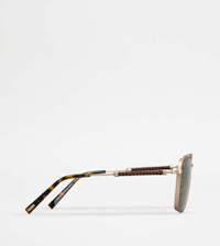 Sunglasses in metal with a slightly squared shape. A refined synthesis of contemporary mood and artisanal taste, with temples characterized by an elegant leather weaving, acetate ends and Tod's logo - Made in Italy - Men's Tod's Sunglasses - Galvanized metal frame - Galvanized metal and leather temples - Dimensions: lens width 2.2 ins, nose bridge 0.7 ins, temple length 5.7 ins - UVA/UVB protection - Compliant with EN ISO 12312-1 standard - Branded case