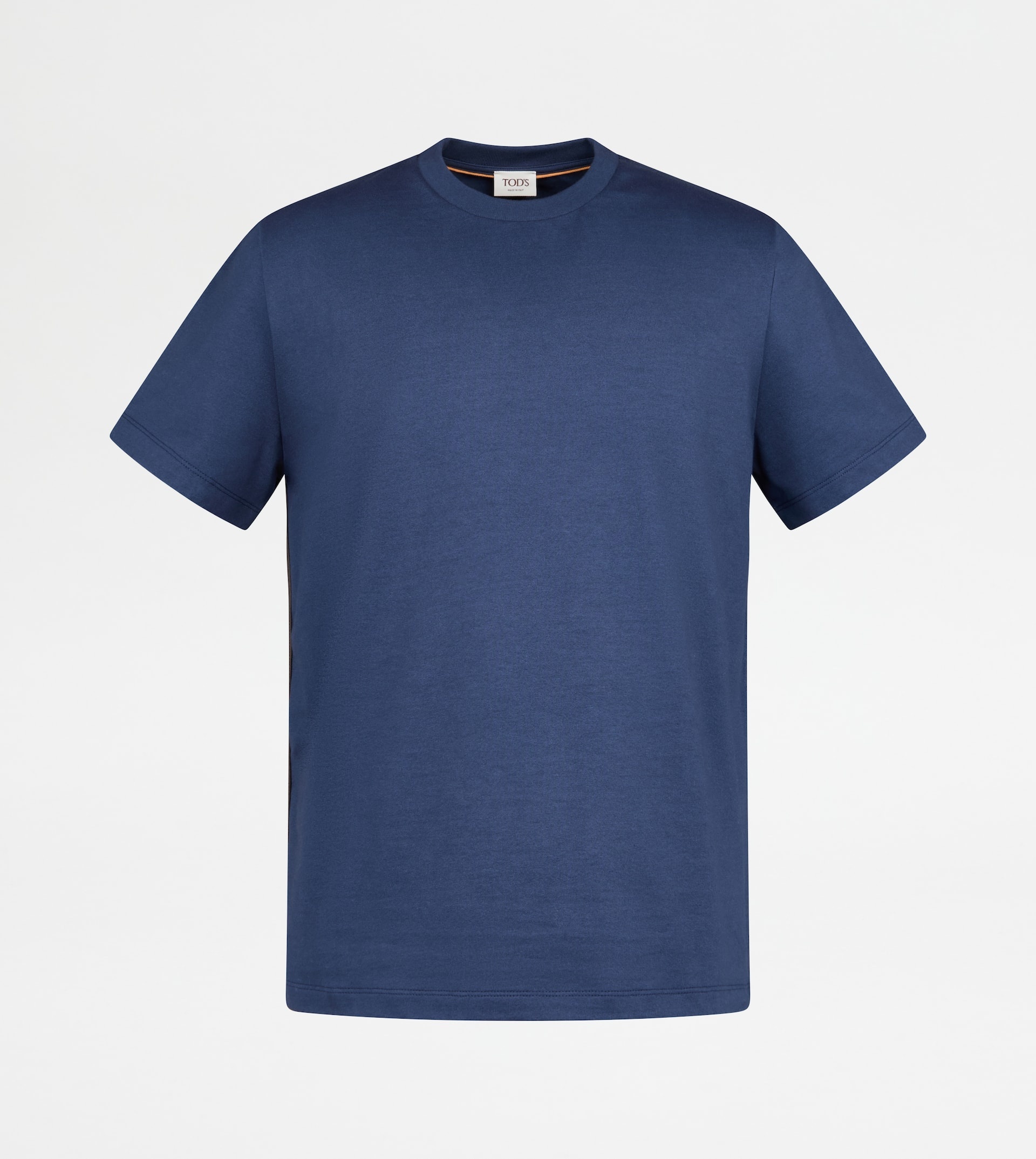 Crafted in cotton jersey, this round-neck T-short comes with the Tod's monogram hand-embroidered on the shoulders. The contrasting ribbing on the sides recalls the internal piping that characterizes the collection's outwear. - Made in Italy - T-shirt in jersey - Fitting: regular - Item composition: 100% cotton, inserts 100% cotton - Maintenance and care cards included
