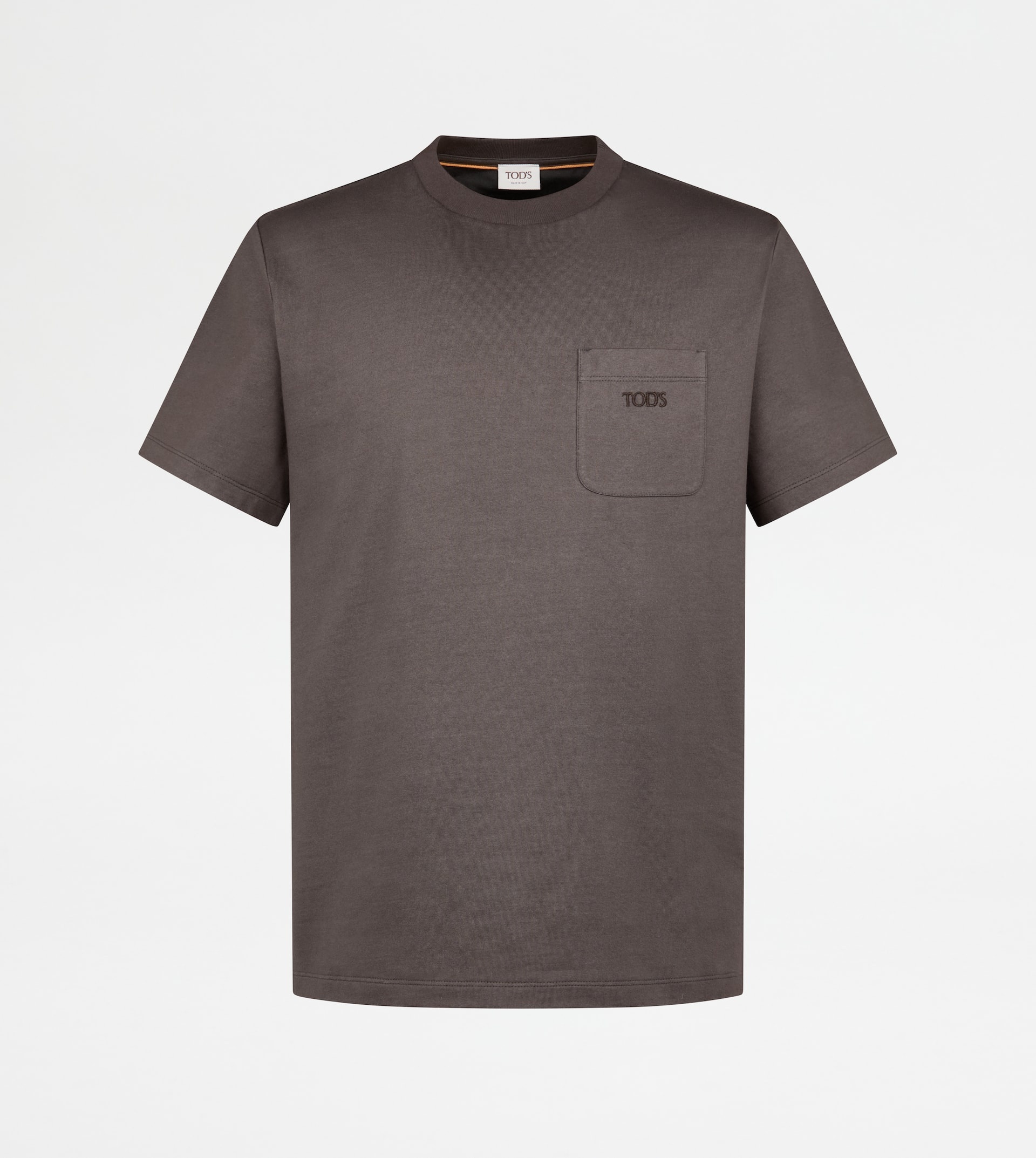 Short-sleeved T-shirt in cotton jersey, with color block back. A versatile garment with a sober style, and the Tod's logo embroidered on the breast pocket. - Made in Italy - T-shirt in jersey - Fitting: regular - Item composition: 100% cotton, inserts 100% cotton - Maintenance and care cards included